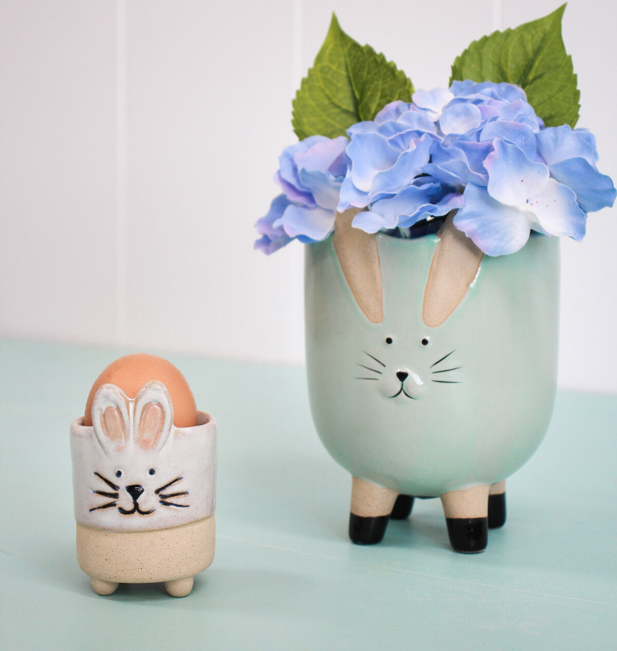 Its serene aqua colour adds a subtle hint of calmness, effortlessly complementing a variety of decor styles from modern minimalist to country chic. The artisanal quality of the Jingles Rabbit Planter means that each piece has its own unique finish and slight variations, ensuring that your planter is truly one-of-a-kind.