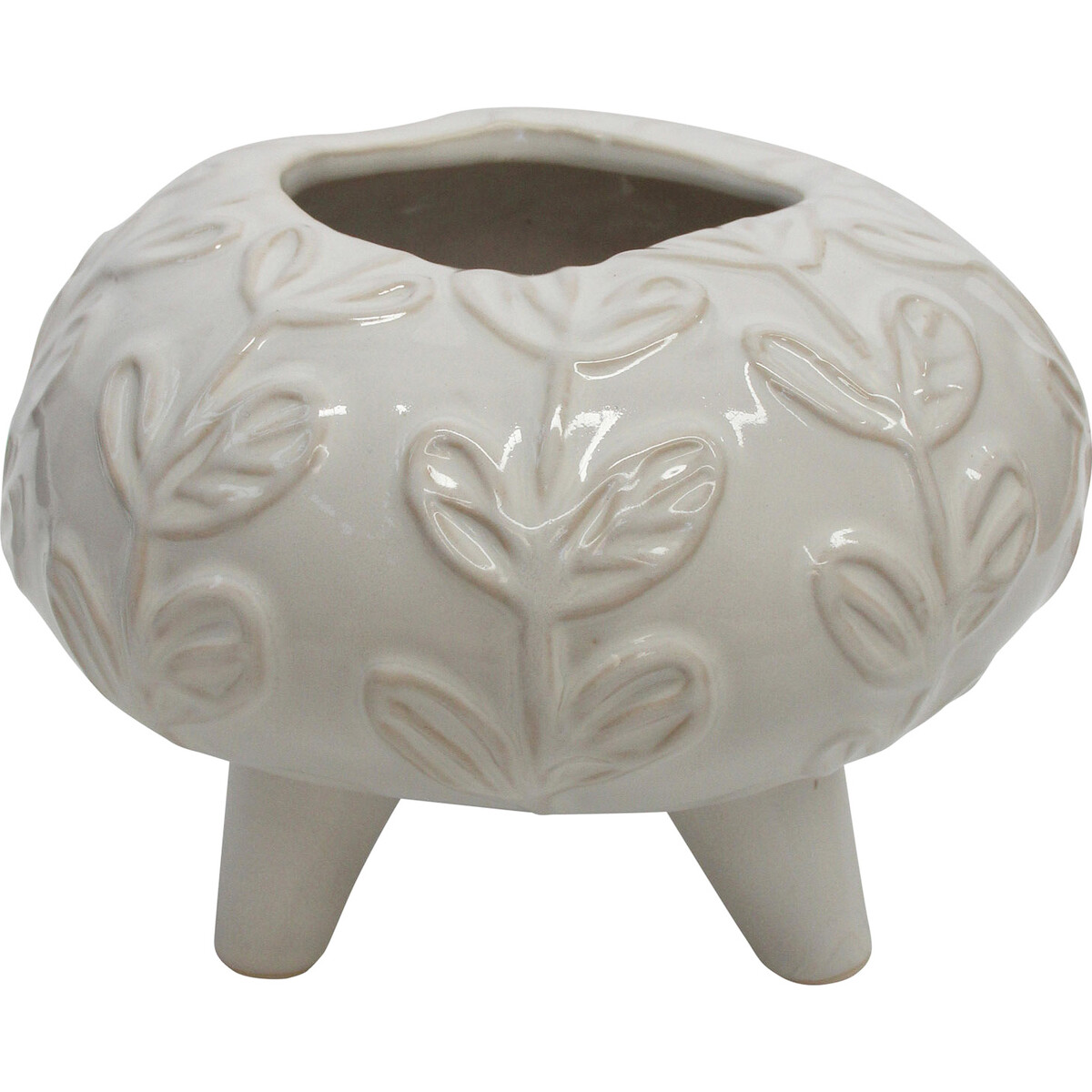 Showcasing a visually appealing round shapeliness, the Planter Leaf belongs to a separate class and category of its own among other planters. Right from its material component which is premium quality ceramic to its eventual moulded design, everything about this planter is absolutely lovely. As a planter that would be used in growing plants, it is ornamented with a foliose design featuring several columns of leaves which envelopes the round figure. With its 15 centimetres stout form which is supported by three short legs, it is 20 centimetres wide.