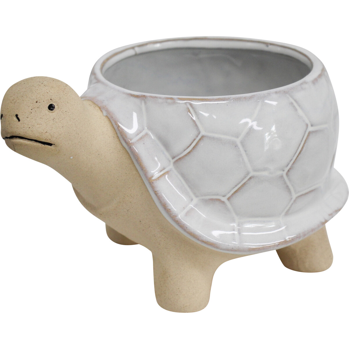 The Planter Mac the Turtle White has a resplendent design which will capture and sustain the attention of your customers no matter where you choose to display this planter in your shop. It is moulded through the use of pure quality ceramic material in the shape and form of a turtle. This turtle themed planter is not only decoratively charming, but also highly functional for use in displaying various artificial plants.