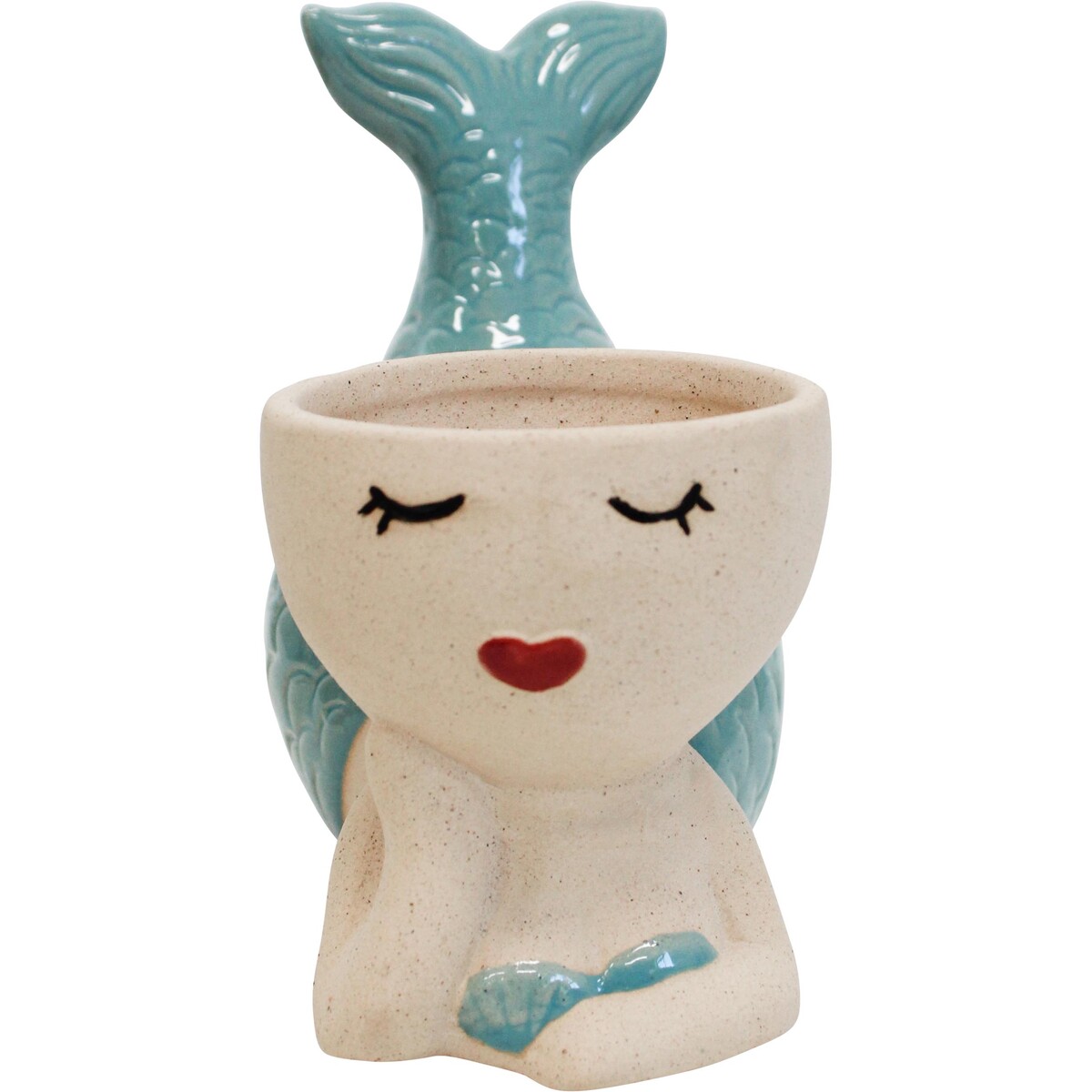 Being a statement piece, the exceptionally crafted design and lavishly lacquered palette is sure to make it an irresistible charmer that customers cannot but ensure that they buy! This planter is made with its bowl top section being painted in a creamy colour with its side painted in the form of the mermaids face featuring lips and eyelashes. Like the popular depiction of mermaids, the lower region is painted in the form of fish scales using azure shade of blue. It is crafted in a large sized design which measures 16.5 centimetres in length.