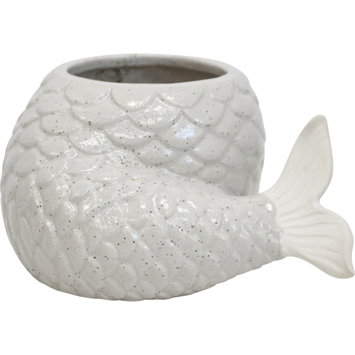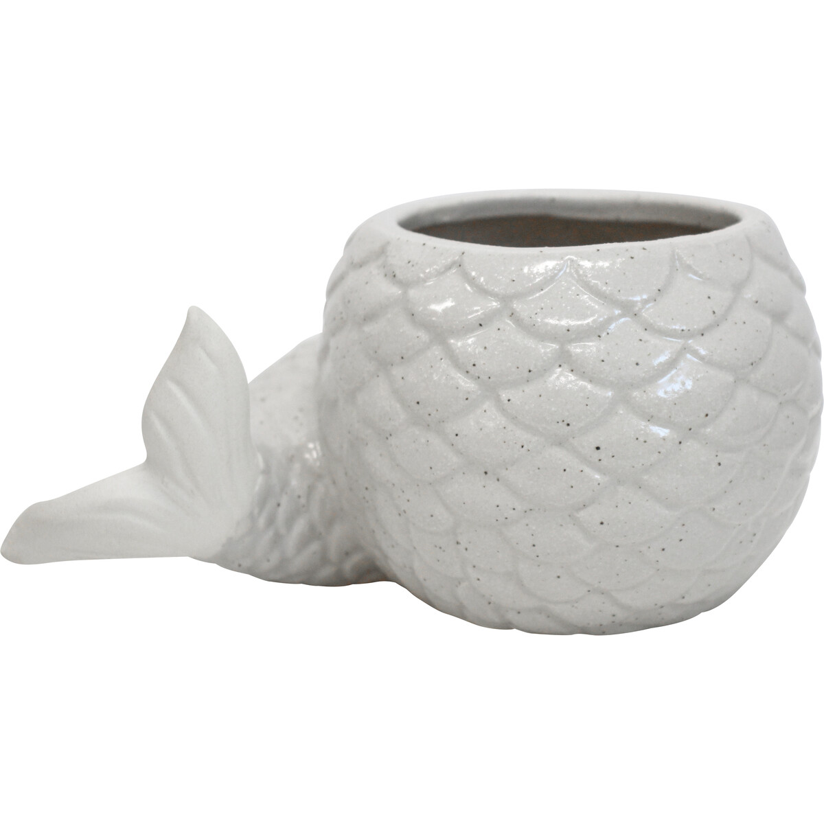 We have to admit, we fell in love with the Planter Mermaid Tail Medium the second we saw it. The hand-painted ceramic finish - 15x11x8cm - is the kind of whimsical, beachy accent that just works so well across all sorts of homewares collections. And there's something about that soft white glaze with those tiny speckles that feels really relaxed and inviting. This one's not for people who want rigid uniformity, though. It's purposely rustic, you can see brush marks and glaze variation - each piece is unique. But that's part of what makes them so good as a coastal or nautical accent. Yes, there's a lot of ocean-themed decor out there, but very few are this fun and also work with a scandi or minimal look.