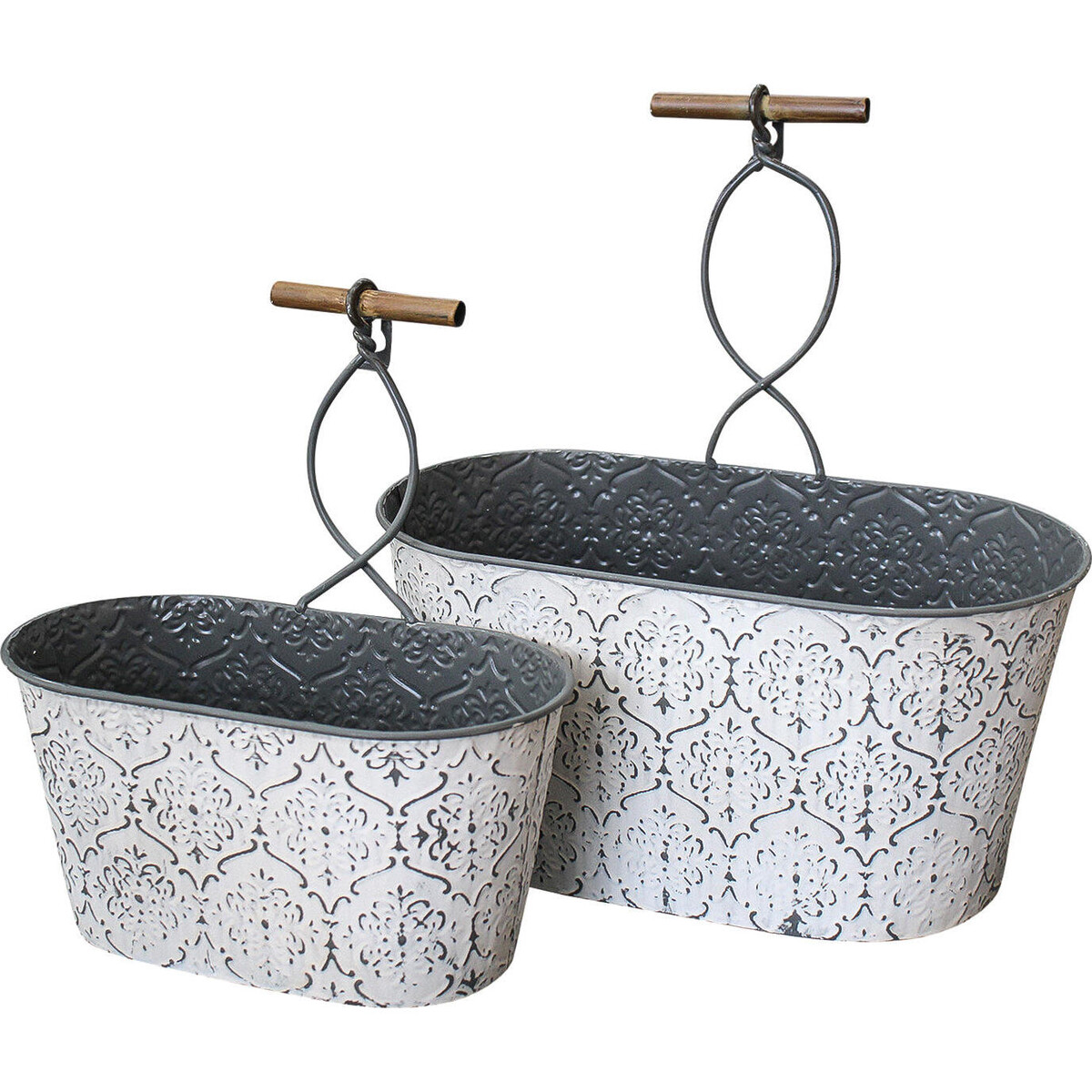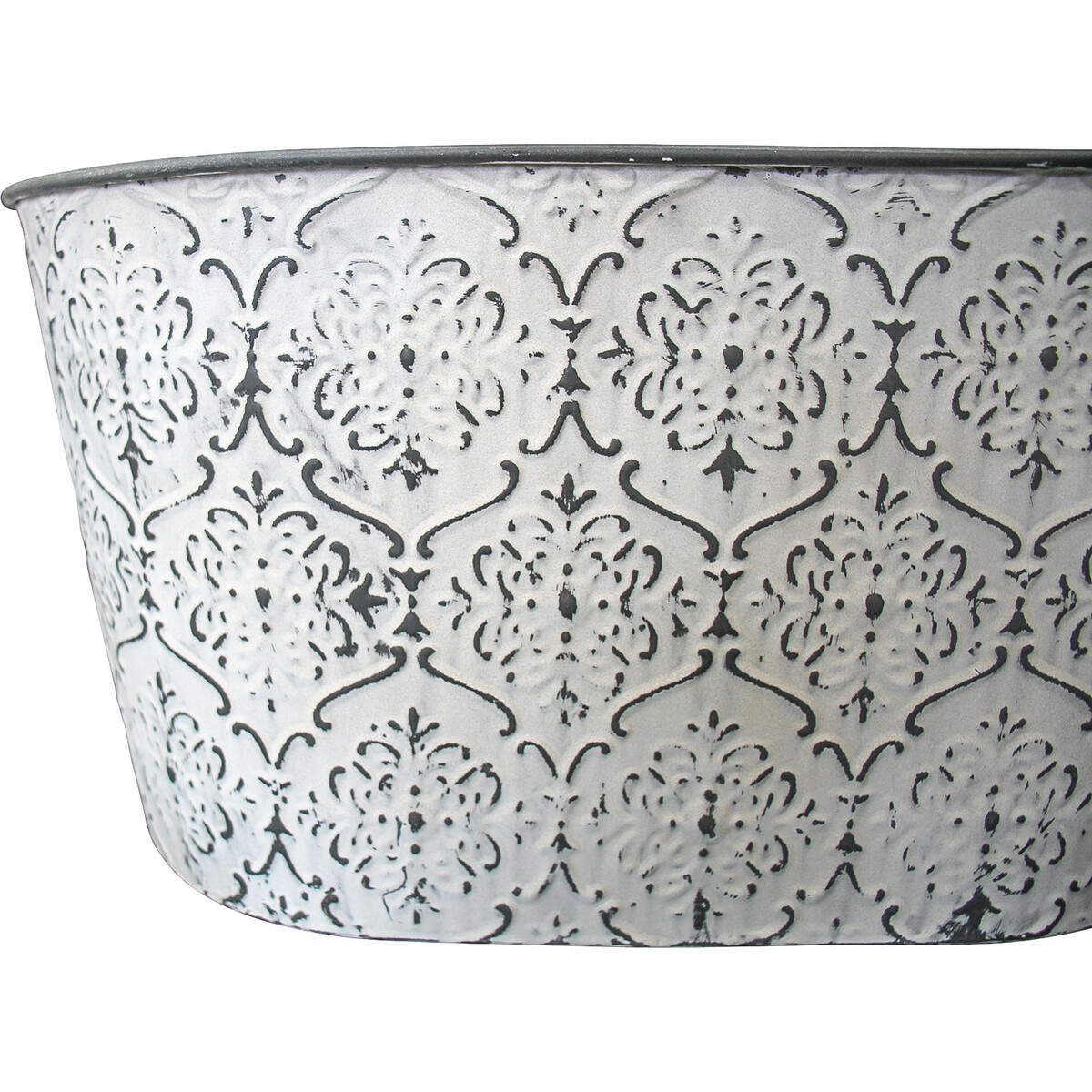 The same design of Moroccan inspired quatrefoil pattern is present in two sizes (18cm H x 34cm W x 36cm L, and 14cm H x 27cm W x 29cm L) and the insides with the different levels for pots are great too! A planter set that is of excellent quality, it is constructed of iron metal sheet and handcrafted to form this stylish unique design that is lightweight, sturdy and looks fabulous! There are hand-painted details in dark grey on a white base with the rim, twisted handle and inside part also in dark grey colour.