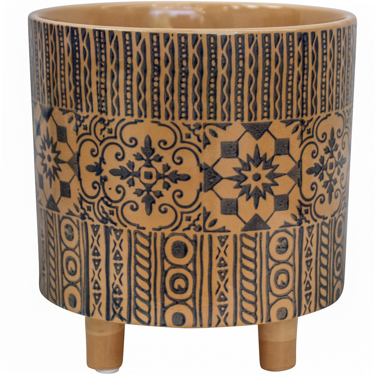Made in a perfectly round shape with its large sized hulk being supported by three stout legs, the Planter Morroc Navy Lrg takes into consideration durability and long serving functionality. It can be used to grow different species of plants like herbs, spices, vegetables, and even ornamental plants like vines and flowers. It is made through the artful moulding of premium quality ceramic material. The thoughtful choice of navy blue painting over a tawny brown coloured background is certain to satisfy the aesthetic taste of many of your customers.