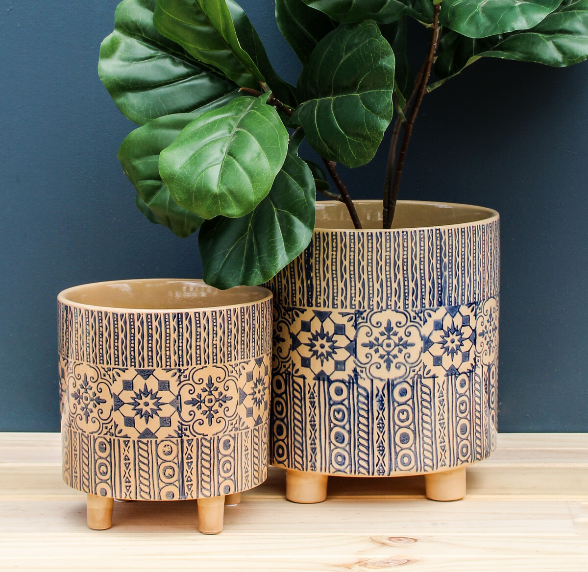 Moulded in an extra-large size for that extra practical functionality, extra durability and extra ornamental appeal, the Planter Morroc Navy XL is certainly a plus in all of its specifications. It is moulded in a dimension which measures 26.5 centimetres in length, 26.5 centimetres in width and 27 centimetres in height. The interior is a rich and colourful tawny brown palette while its exterior is a combination of tawny brown and navy shade of blue. There are two of these extra -large planters in every carton you order today.