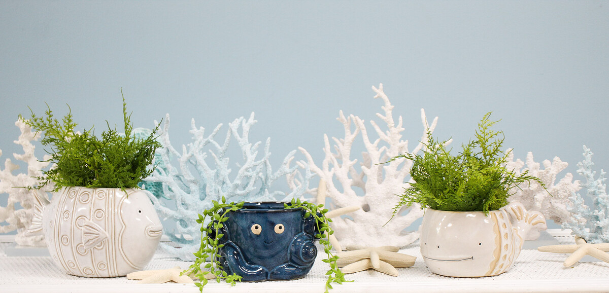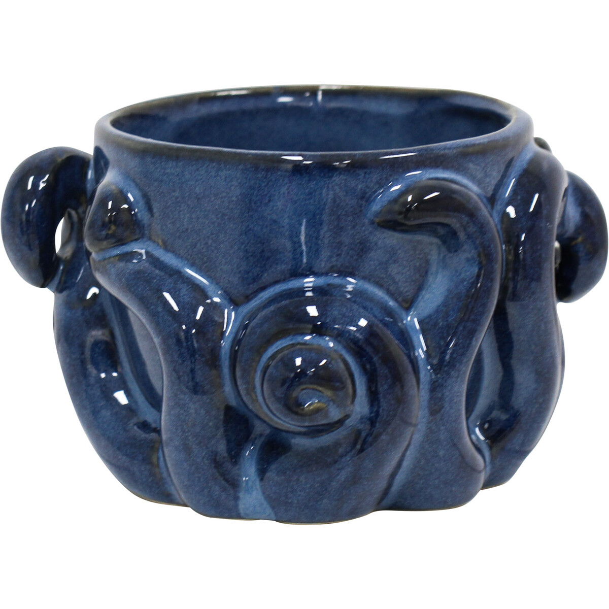 How about giving your customers the opportunity of decorating their various spatial environments with a uniquely crafted planter that will transform the overall appearance of their d?©cor? This Planter Octavio is just the perfect candidate to help do that! Not only is it perfectly suitable for use in displaying several kinds of artificial plants, it is also obviously suitable for use in elevating the decorative atmosphere of its users. What makes it particularly compelling is its choice of octopus motif and the deeply blue hand painted palette.