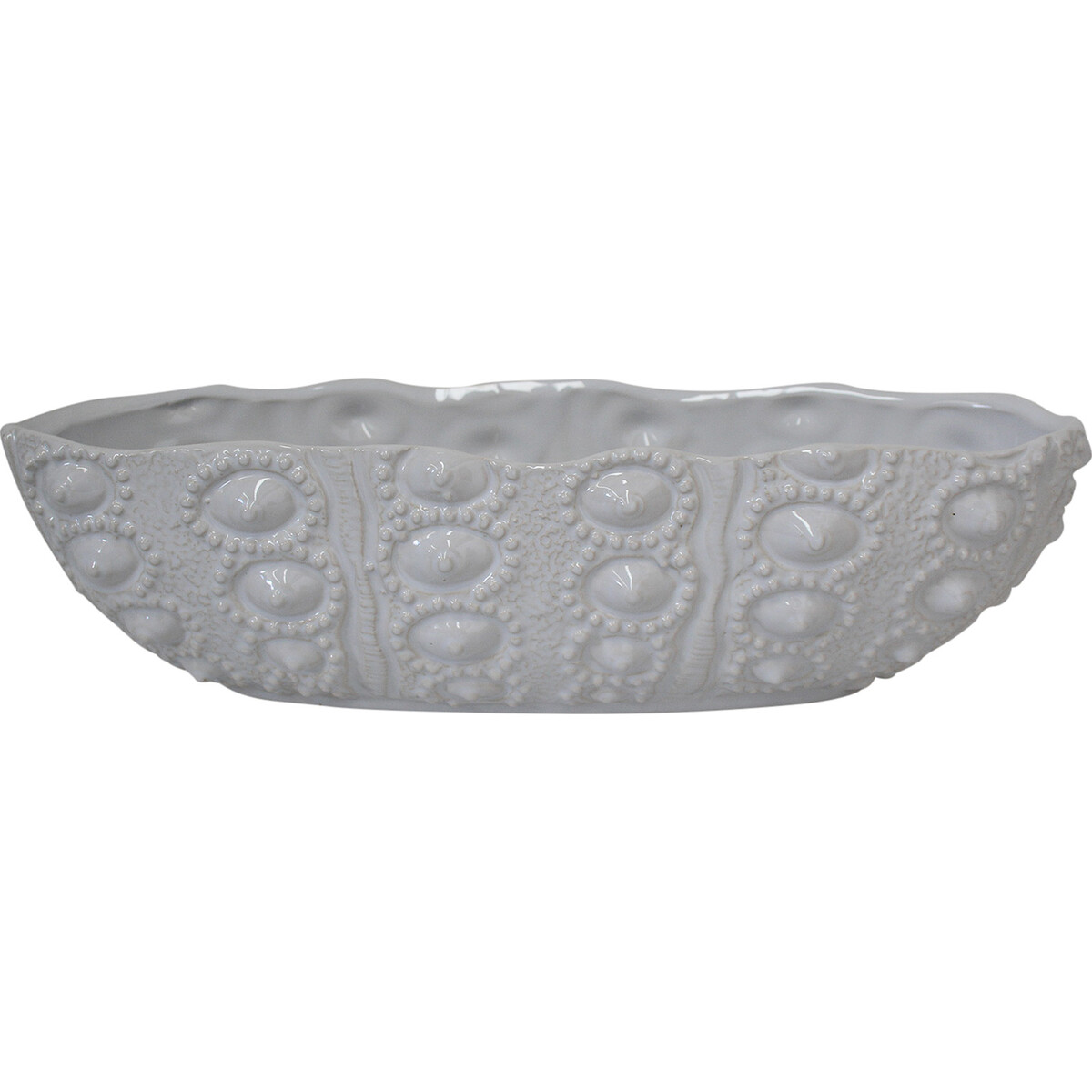 With a visually prominent extra-long dimension, the Planter Oval Anemone XL is an extra-large version of the Planter Oval Anemone Large. Both collections of planters are fast selling series of planters of which feedbacks from customers show that customers love them due to the pristine white palette and pretty anemone floral patterns. The desire for a bigger size that would increase their plant growing capability was what birthed the production of this extra-long version. It measures a whopping 42 centimetres in length making it perfectly suitable as a planting pot. But of course, customers can simply choose to have it displayed in their display shelf as an ornamental ceramic ware.