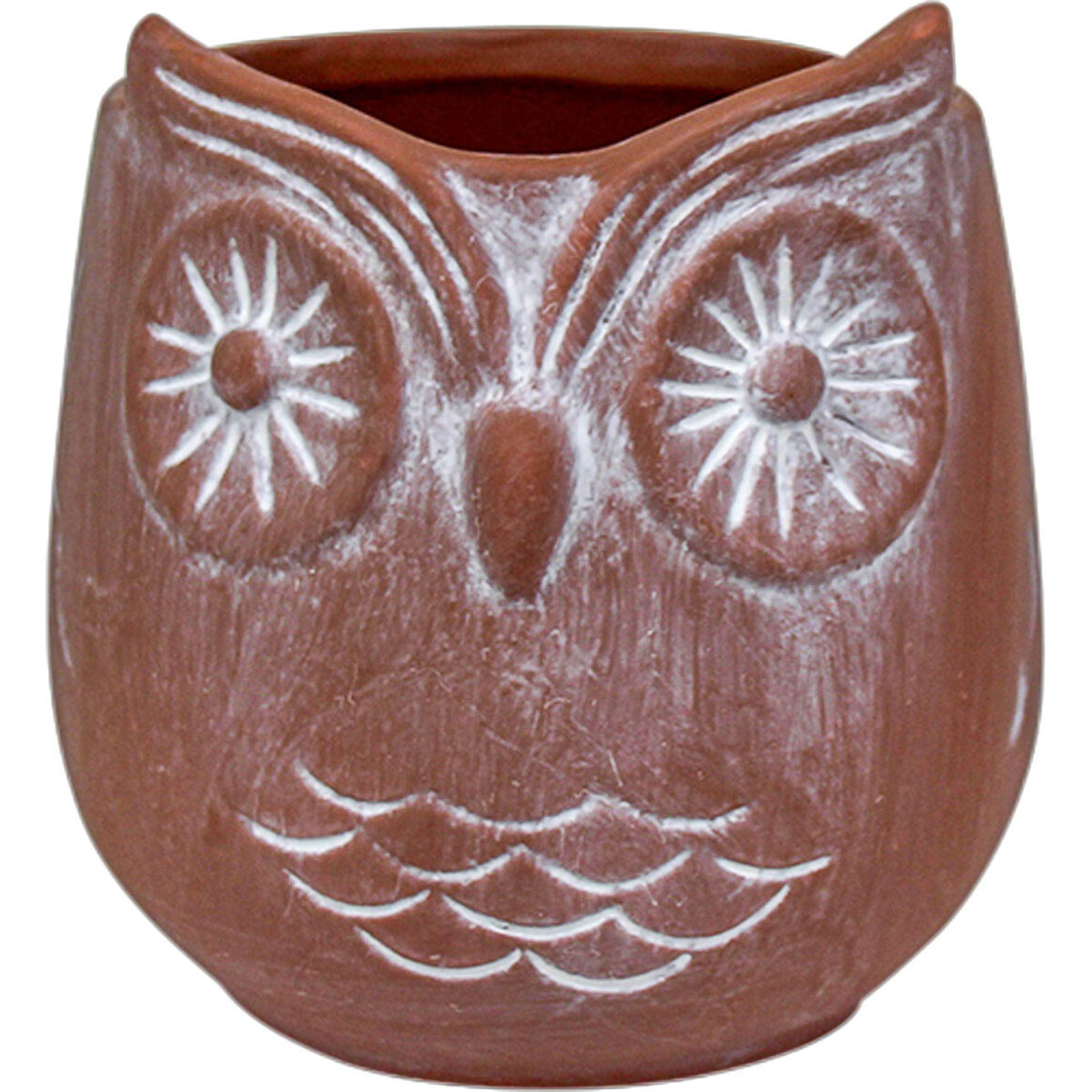 The Planter Owl Terracotta is a distinguished planter that belongs to a separate class of its own due to its distinct ornamental design, owl motif, befitting shape, and overall palette. It is a planter moulded in a befitting portable shape and size which measures 11.5 centimetres across in length and width, and likewise 13 centimetres in height. It is then ornamented with the nature infused motif of an owl bird which is easily recognised by its set of large eyes and pointy bill. It is then lightly painted in white especially around the owl face.