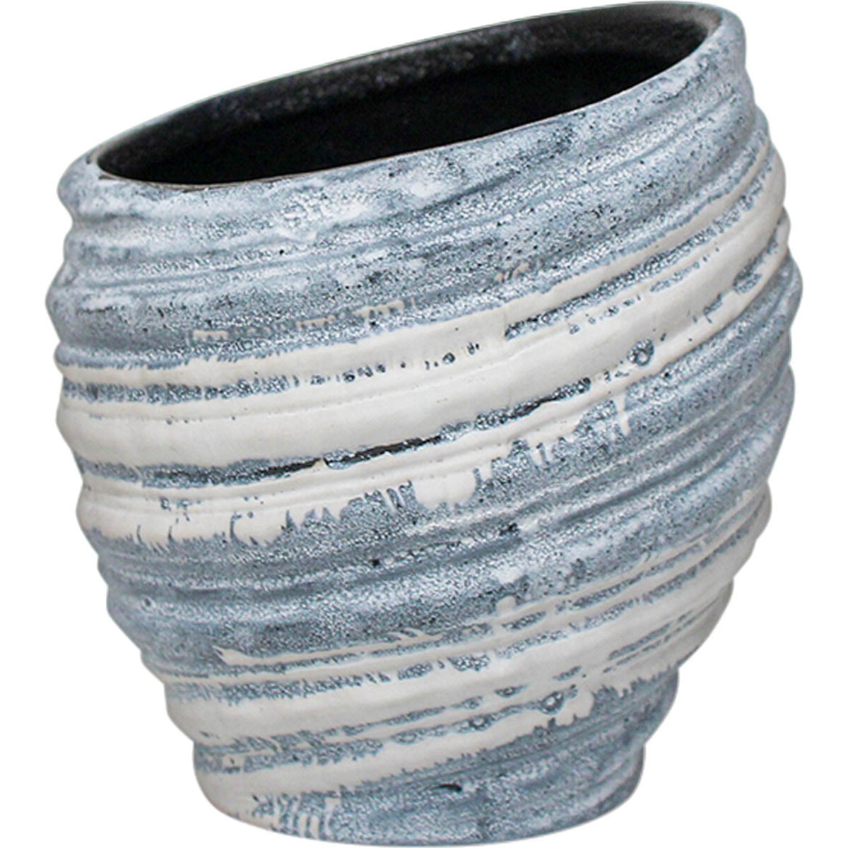 The medium sized Planter Oyster Blue derives its appealing look from the artful imitation of a sea oyster. With a total height of 15 centimetres, it is a big enough planting pot for several plants including ornamental ferns. Now imagine the beauty of freshly blooming flower combined with the sea blue and white striped palette of this oyster shaped planter, the look would be absolutely stunning! When displayed along with other planters in your shop, this would definitely stand out of the crowd due to its oyster shape, stoneware ceramic material and décor blending pastel palette. Please note that there could be slight differences in the palette and finishes due to hand glazing.