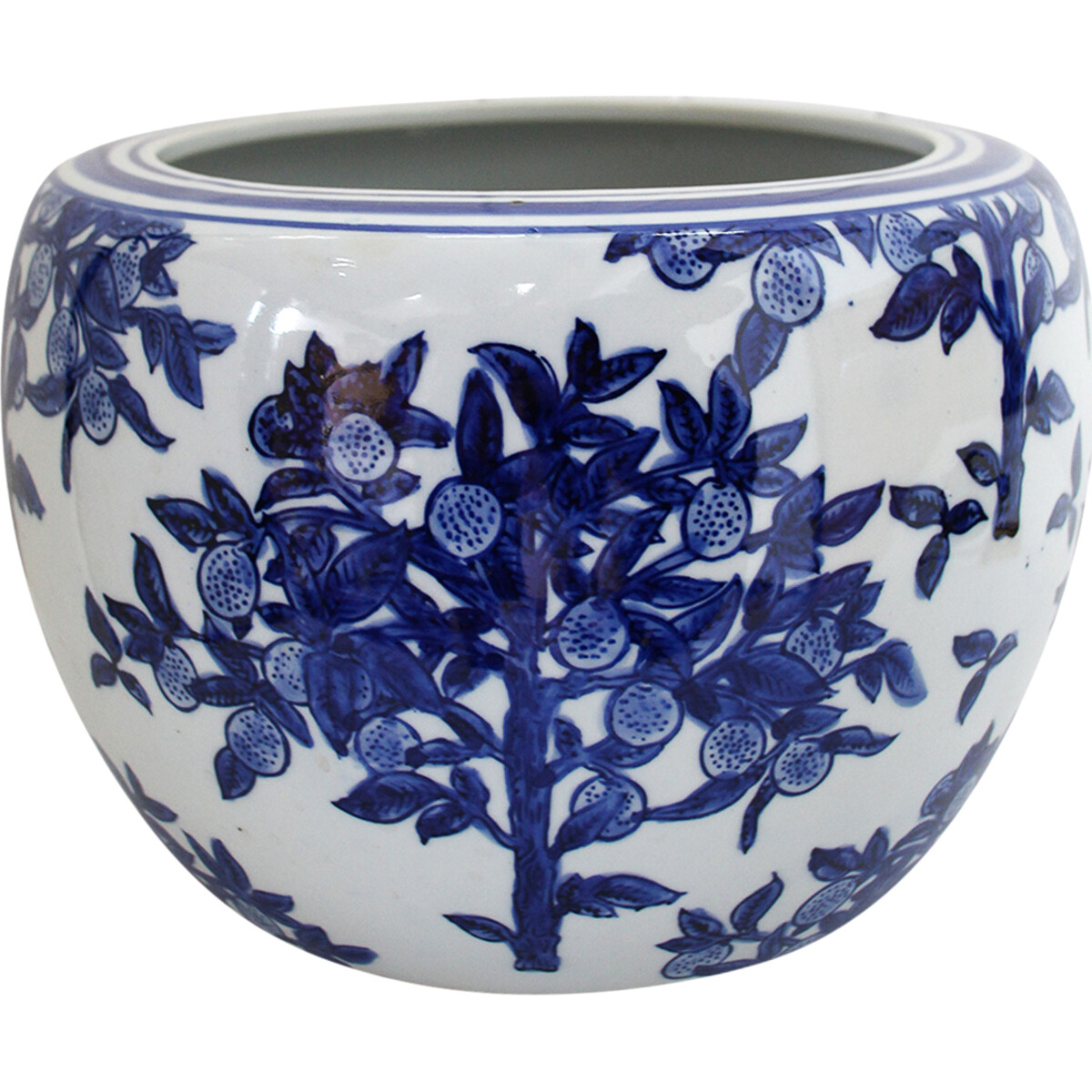 Featuring spectacularly hand-painted floral motif, the Planter Parterre is completely committed to ensuring that interior d?©cor possess the same natural appeal of gardens. This is because this planting pot has its exterior embellished with stunning flowery elegance which features the image of several fruiting trees. The parterre image is rendered using the colour blue which appears brightly over a glossy white background. It is made in the form of a pot which stands at 17 centimetres high and measures 25 centimetres in both its length and width.
