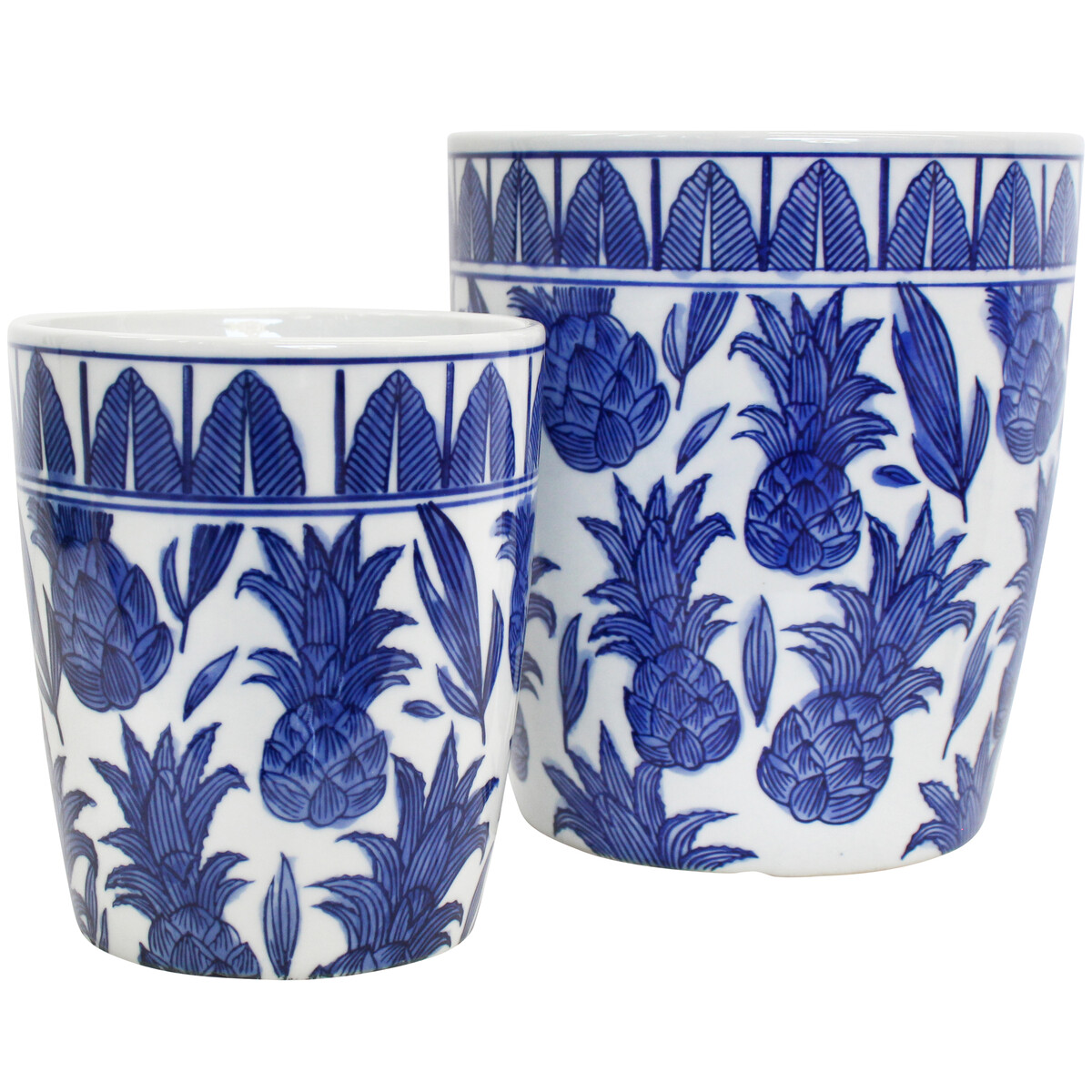 When considering the adding of plants to your spaces, the choice of planters plays a very important role. Here is one crafted from porcelain, with the tropical pineapple print in blue and white. You will love the high gloss on the exterior of the planters and the fact that they come into different sizes makes them a great choice if you are planning to mix and match your plants. The graceful design, the Oriental inspiration and the size all adds to its most favourable features. You could place them on top of tables because they have the class and sophistication to be used invisible spaces and not just be kept in discrete corners. The glaze of this porcelain plant has been achieved using high temperature firing technique by experts who know the craft of creating these marvels.