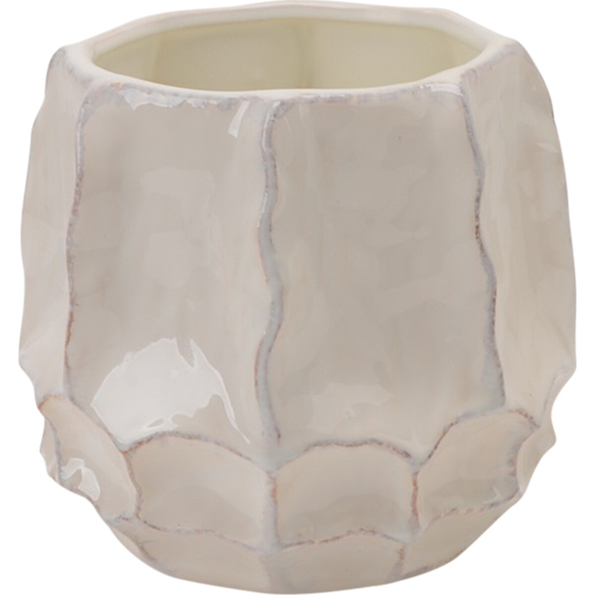 Bring a fresh new vibe to your greens with planters that are sure to add class and elegance to them. Here is a one that is sturdy in its make and a delightful mix of modernity and traditional crafting method used in creating ceramics. Here is a planter sure to regale you with its chic design and its pretty pearly white colour as with its unique ripped designed that some expert hands have given shape to. The planter is a mere 20 cm tall and thus would be best for small shirt stemmed plants that have upright stems that will allow the prettiness of the planter to be visible apart form the beauty of the plant it will help reside. The off-white colour being as neutral as it can be, it will combine well with all kinds of other pieces that might be part of the décor. The ceramic planter has a delightful sheen that comes from the perfect firing technique used in creating it.