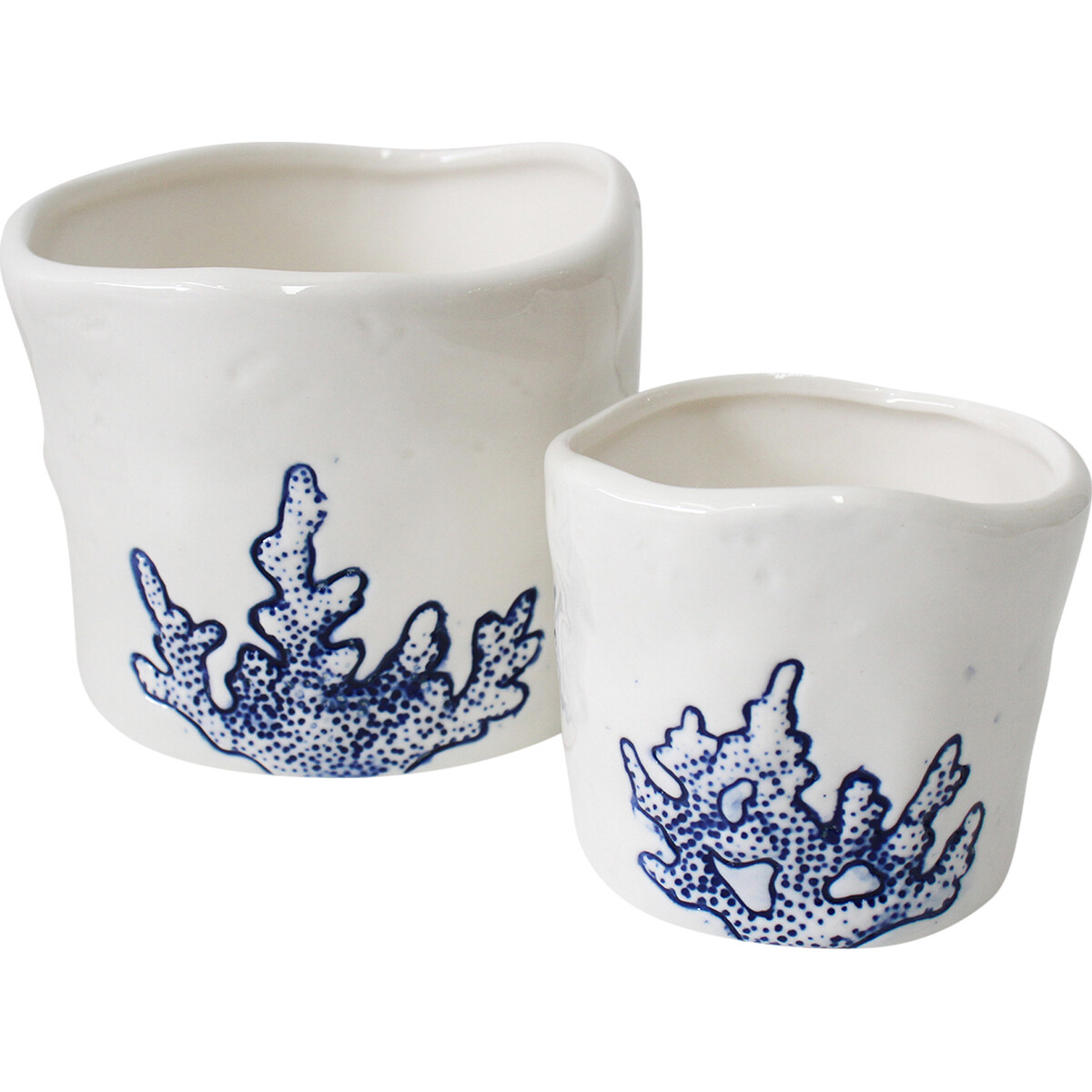 Did you know that though corals look like plants, they are not plants but animals? These incredible plant-looking animals have great beneficial application to man as they produce very powerful chemicals which are useful in combating diseases such as cancer, Alzheimer's disease, arthritis, and many more. This Planter Round S/2 Coral is therefore a tribute to these life-saving corals which exist abundantly in our country's marine habitats. Each of the planer is moulded with a pristine white glazing over which the beautiful images of corals are glazed in navy blue colour.