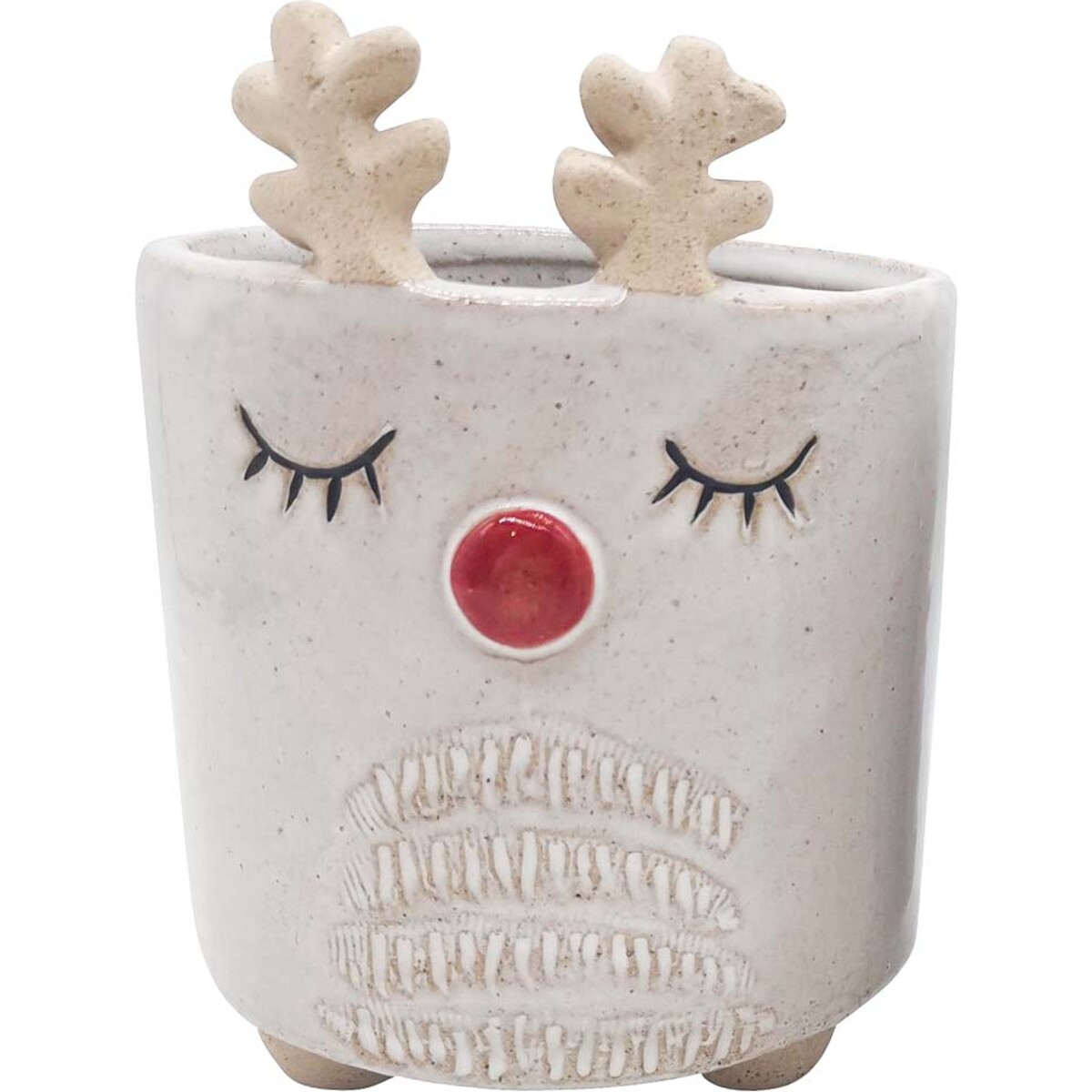 Planter Rudolf spreads holiday cheers. It is fitting in the children's room. Exhilarated by the fictional character who is somewhat different and that made him special. The story bound piece about Rudolf can propel juveniles and teach valuable life lessons. This decorative planter is an indispensable element in indoors prettification. The ceramic planter has a portable stand for appropriate grip and balance that prevents the planter from plunging off the table. The exclusivity of this ceramic planter is evident in its handcrafted nature. Planter Rudolf does not require day to day upkeep, it can be cleaned at irregular intervals with a soft damp cloth.