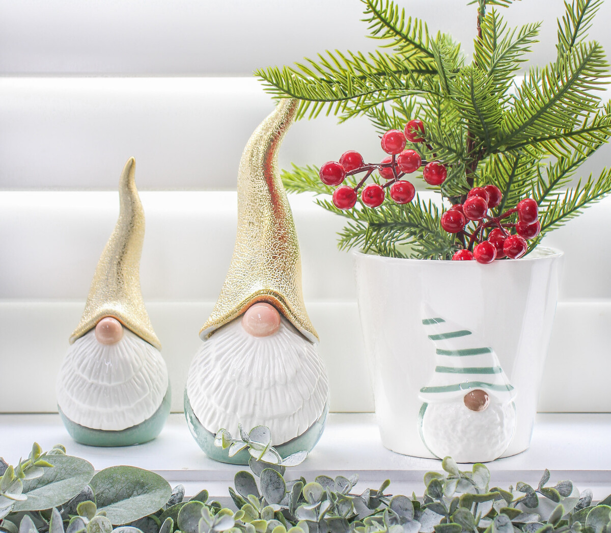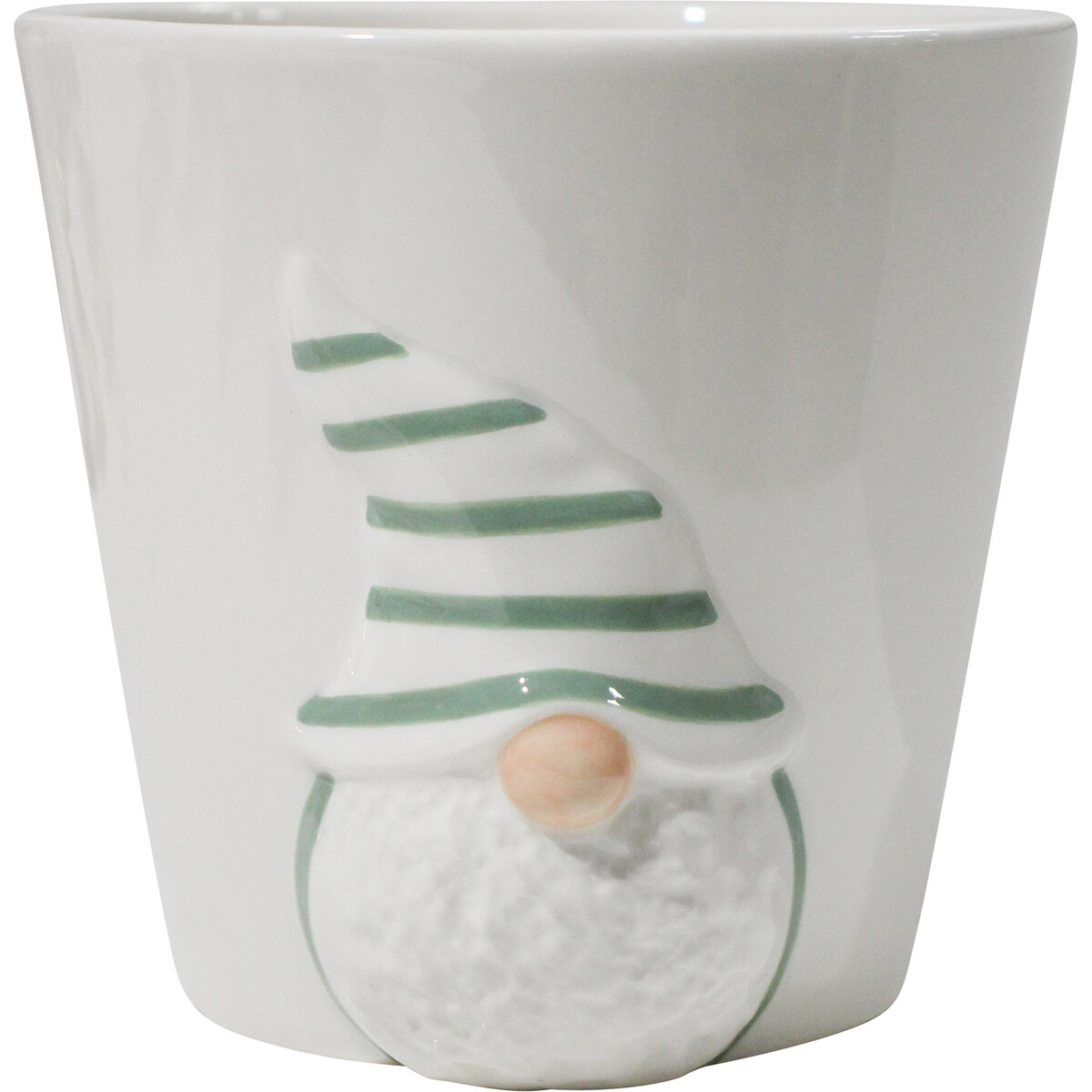 Made from ceramic, the sheen on the outer body of the planter gets echoed on the inner surface as well. About 13 cm in height and at a maximum diameter of 13 cm , the planter is wide on the top and sits on the small round base. The green Santa appears on one side while the4 rest of the planter body wears a clean white look. You could place little branches of holly and ivy to dress up the space and align the look well with the festivities. Will be easy to combine with all your other Santa inspired décor inclusions. You can place a potted green in it or simply place faux stems to complete the look. The size makes it versatile in placement options - on window sills, table tops or any space which needs a little holiday joy.