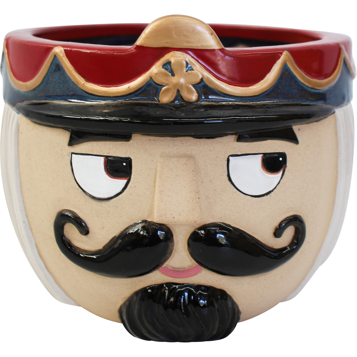 Planter Sargeant is a strong and unusual addition to a home or office collection. Bold? Yes. Kind of cheeky, too - it’s rare to see handmade ceramic finished with this much personality. The result is eye-catching and tactile, but still in good taste. He’s slightly cartoonish (16x15.5x13cm) but not too silly to deter someone who likes a playful home or workspace. Red, black, cream, gold, blue - it isn’t shy with colour but can fit in well with classic spaces as much as contemporary ones. And each piece will be unique because of the hand-crafting process.