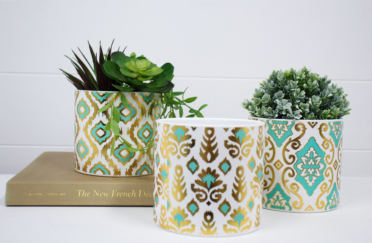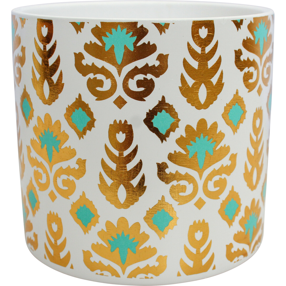Our Planter Sari isn’t one of those everyday pots that just fade into the background - it’s got real presence and a bit of punch too. The bold gold pattern with that little pop of aqua draws people in, especially set against the modern white ceramic base. Quite eye-catching, honestly. At 13 x 13 x 12 cm it’s compact, but not tiny - we think it’s the sort of thing that fits anywhere from a kitchen window ledge to a desk or entryway table, so it’s easy for your customers to move about and find just the right spot.