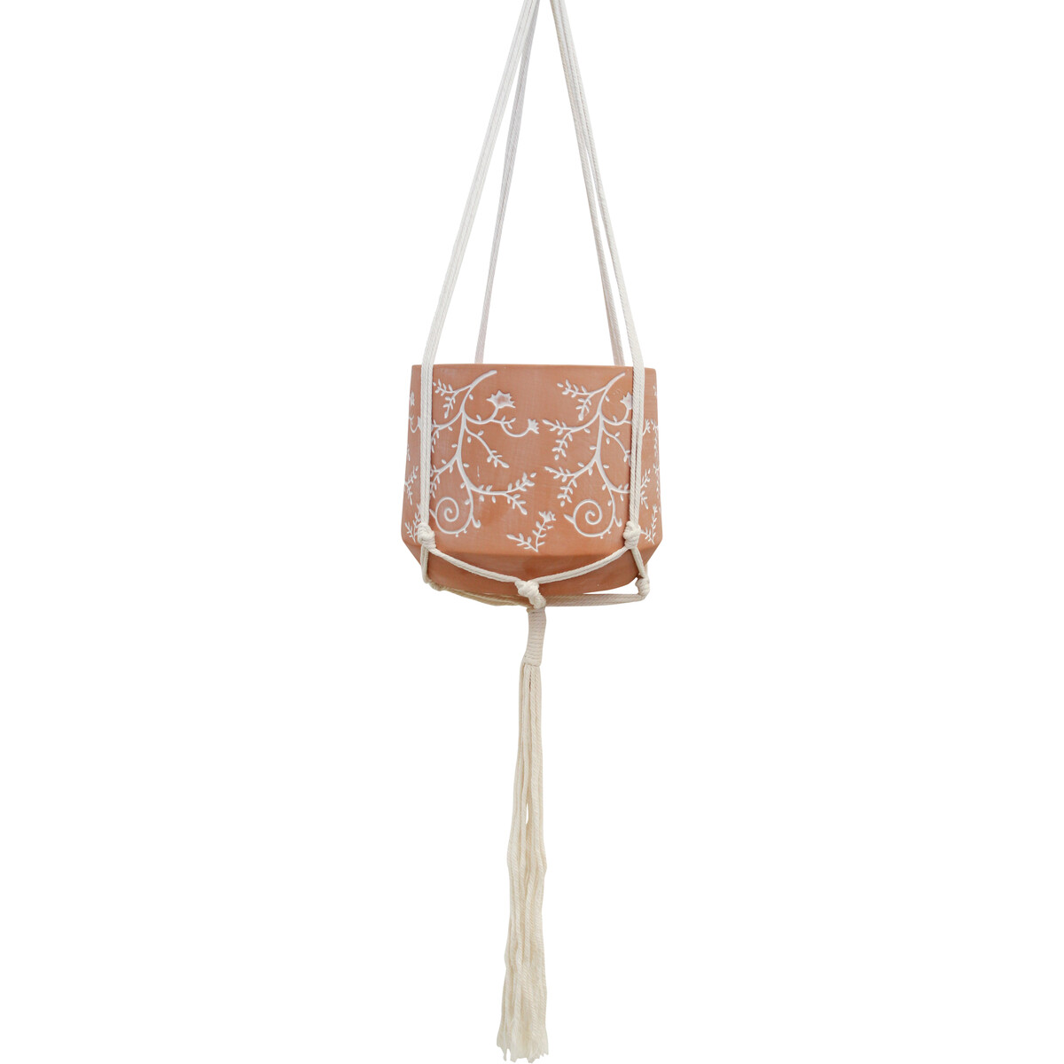 This portable sized hanging planter comes with a rope for functional and aesthetic purposes that transforms it into a hanging beauty. Show off a sophisticated interior with Planter Scroll. Needless to say, it has an eclectic accent that will blend with any personality or style. The beauty of this terracotta planter is its soil properties, it has porous walls that breathe recuperating moisture and humidity into plants. Homeowners seeking to elevate their greenery display can opt for this planter. It is best suited for overflowing plants or plants with climbing tendrils.