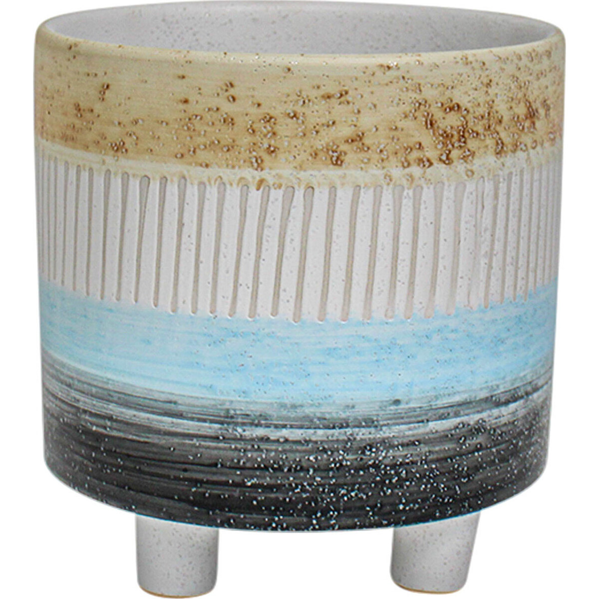 The Planter Seaside Medium is a beautifully hand glazed planter with a design featuring an assortment of colours that adorns it with an aesthetic appeal. With a moderate 15 centimetres dimension, the planter has enough space for a practical plant growing endeavour. It would also come in handy as a d?©cor enhancing ornament due to its colourful hand glazing done in horizontally striped pattern. With a predominant white hue, the glazing features other attractive colours of orange blue and black which is certain to blend in with every living space d?©cor be it indoor or outdoor. Each carton you order contains 4 of these pretty planters and there might be slight colour differences since it was hand glazed.