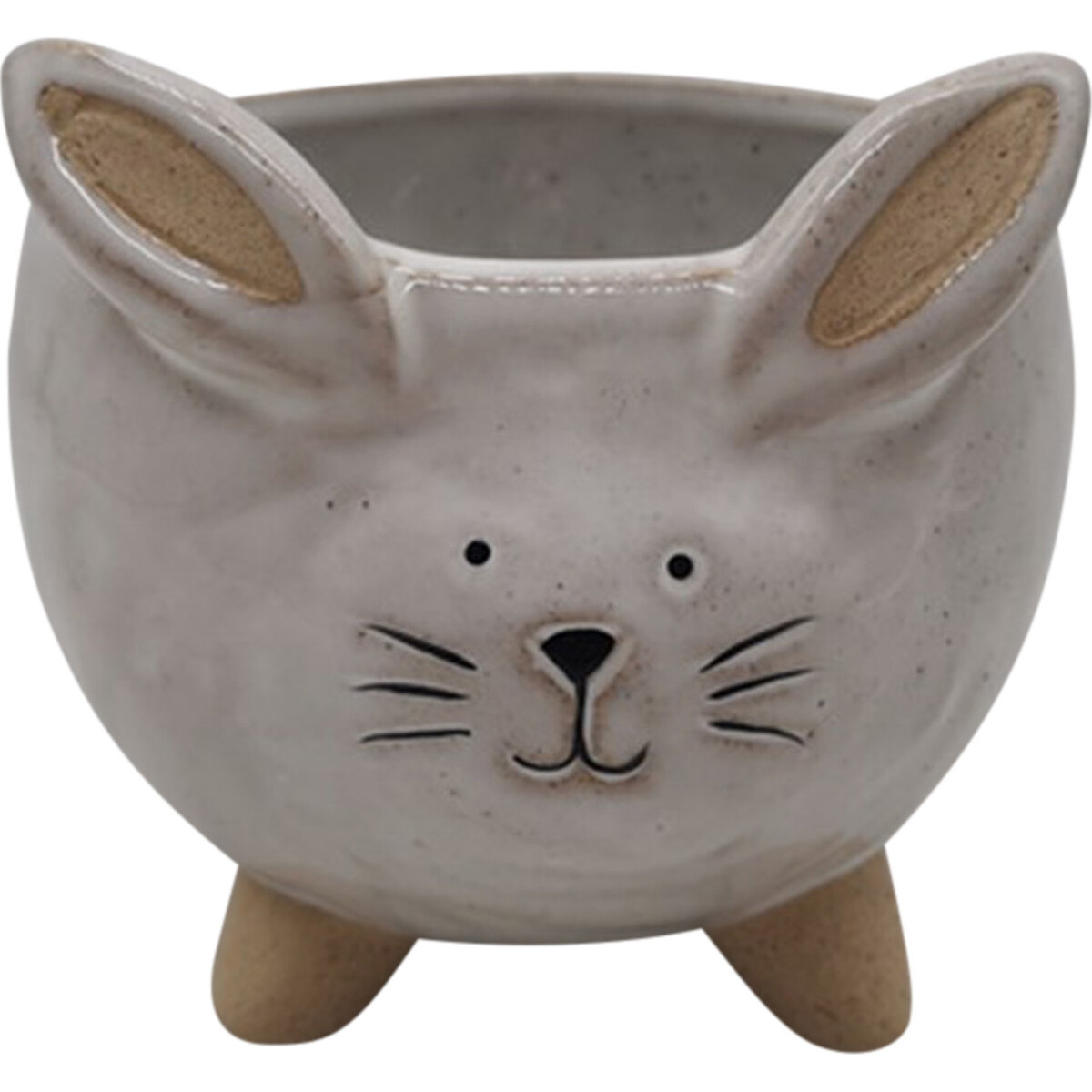 This ceramic planter is a simple display of quintessence. Made out of ceramics, a guarantee for durability and sophistication. This planter is a unique centrepiece that catches one's eyes wherever it is placed. It is an ideal planter for indoor plants and succulents. Exclusive of its luxurious demure, this planter highlights brilliant craftsmanship, featuring fluffy-like ears and subtle facial details. Due to its handcrafted nature, each piece is distinct with slight variations. For lovers of environmental-compatible items, this ceramic planter is made with environmental degradation at heart. This ceramic piece is easy to clean. It is however light but not weightless enough to get knocked down by pets. This is a fitting home for succulents, herbs and small plants and then placed on a mantelpiece or mount on windowsills.
