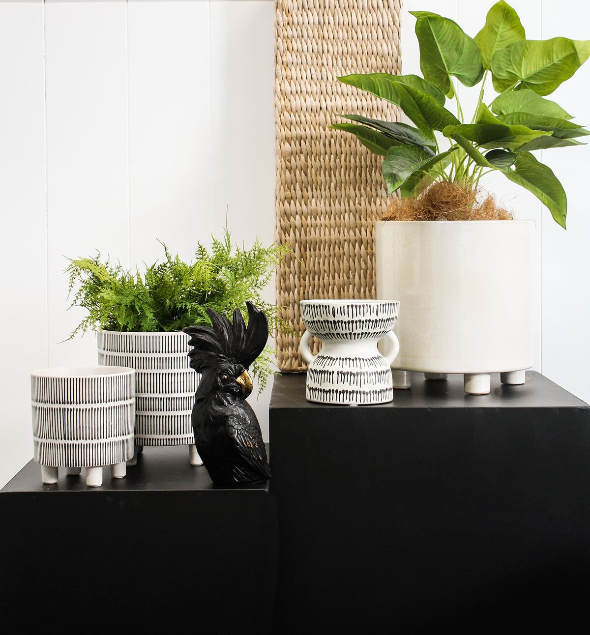 Crafted through the use of high quality ceramic material which is made in a cylindrical shaped dimension measuring 15.5 centimetres in length, 15.5 centimetres in width and standing at 16 centimetres in height, this Planter Still Waters Med is moderately sized but makes a big aesthetic statement via its unconventionally appealing deign. The horizontal black and white stripes will easily blend in with most spatial d?©cor while also providing the perfect decorative backdrop for whatever choice of planters users intend to display or grow. There are a dozen in every carton quantity which you order today.