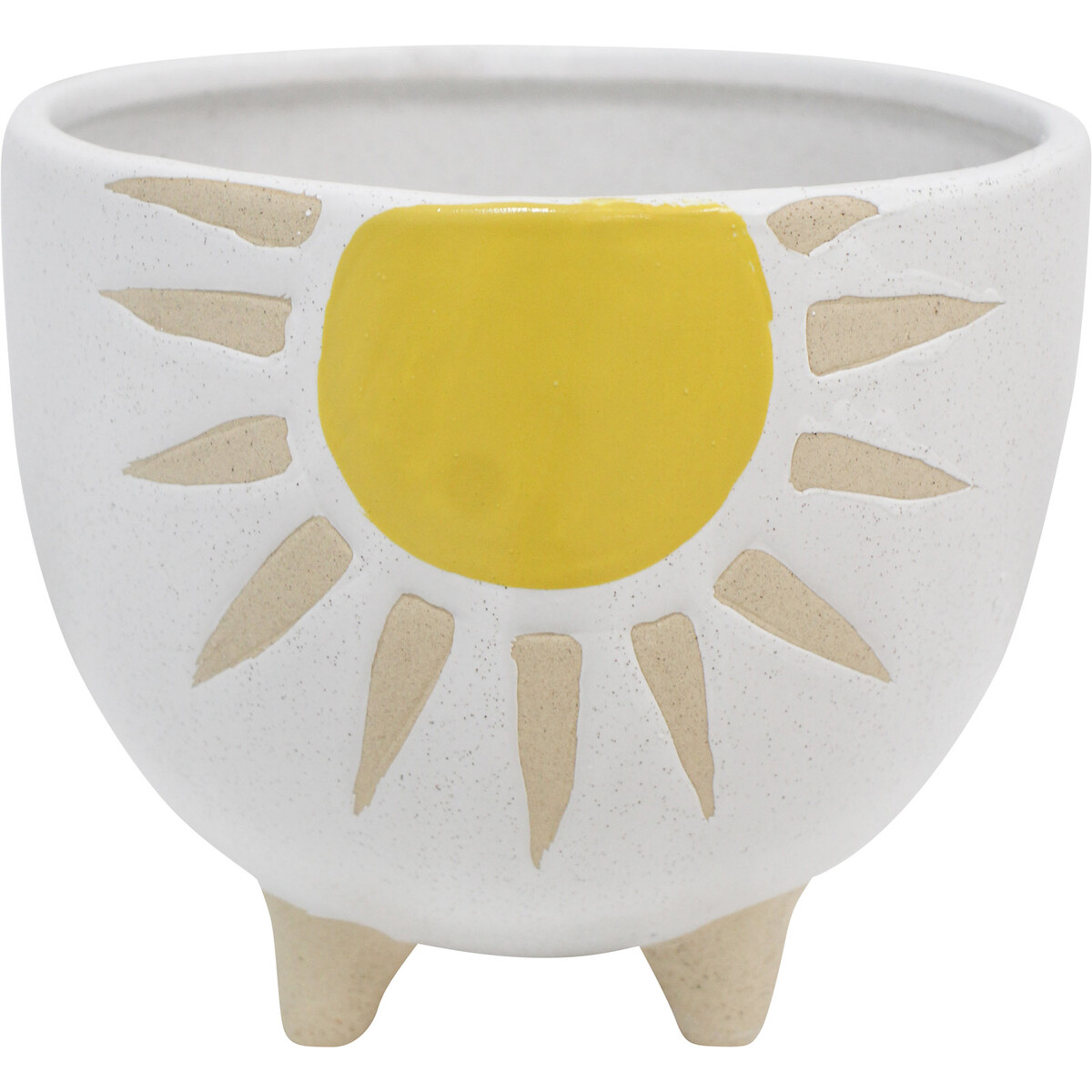 Using well-refined, premium grade ceramic material, the Planter Sunshine Yellow is hand made in a dimension which measures 16 centimetres in length, 16 centimetres in width and 13.7 centimetres in height as it is supported by four sturdy stands. On the one side of this planter is the glazed motif of bright shining sun. This gives this planter an ornamental appeal that would be perfect in elevating the d?©cor of every interior spatial setting. Apart from its ornamental appeal, it can also be used to display artificial plants and flowers.