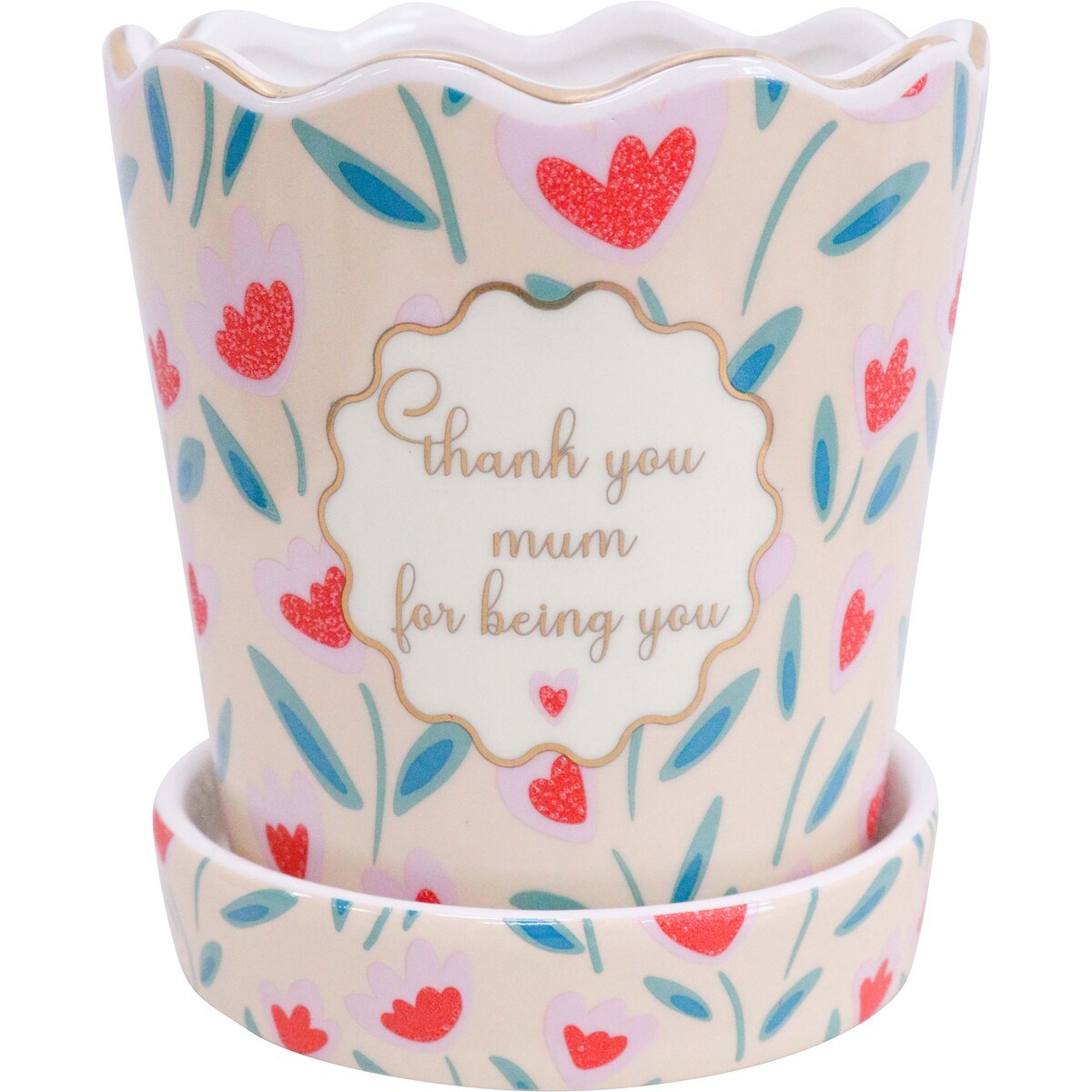 We’re loving the energy this Planter Thank You Mum brings to the shelf. A little charm that says it all without getting too sappy - it’s a best seller in our opinion. It’s got this soft floral pattern in red, pink, and blue - that’s sort of happy and relaxed at the same time. And a hand-lettered message on the front thanking mums for just being them. For customers seeking something more than just florals - this is an eye-catcher. You won’t get bored of it quickly, that’s for sure.