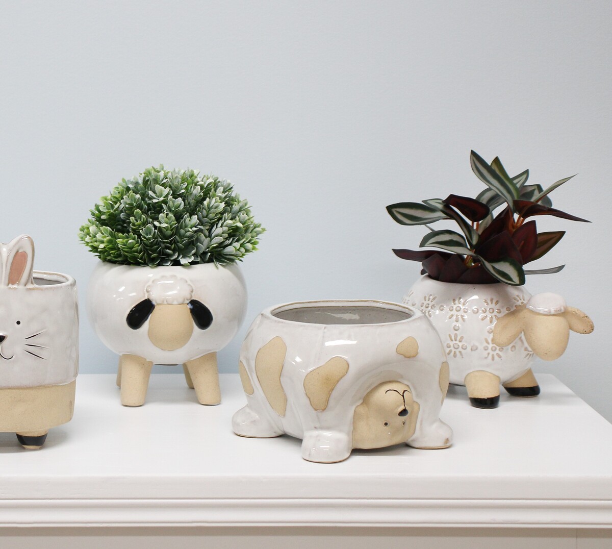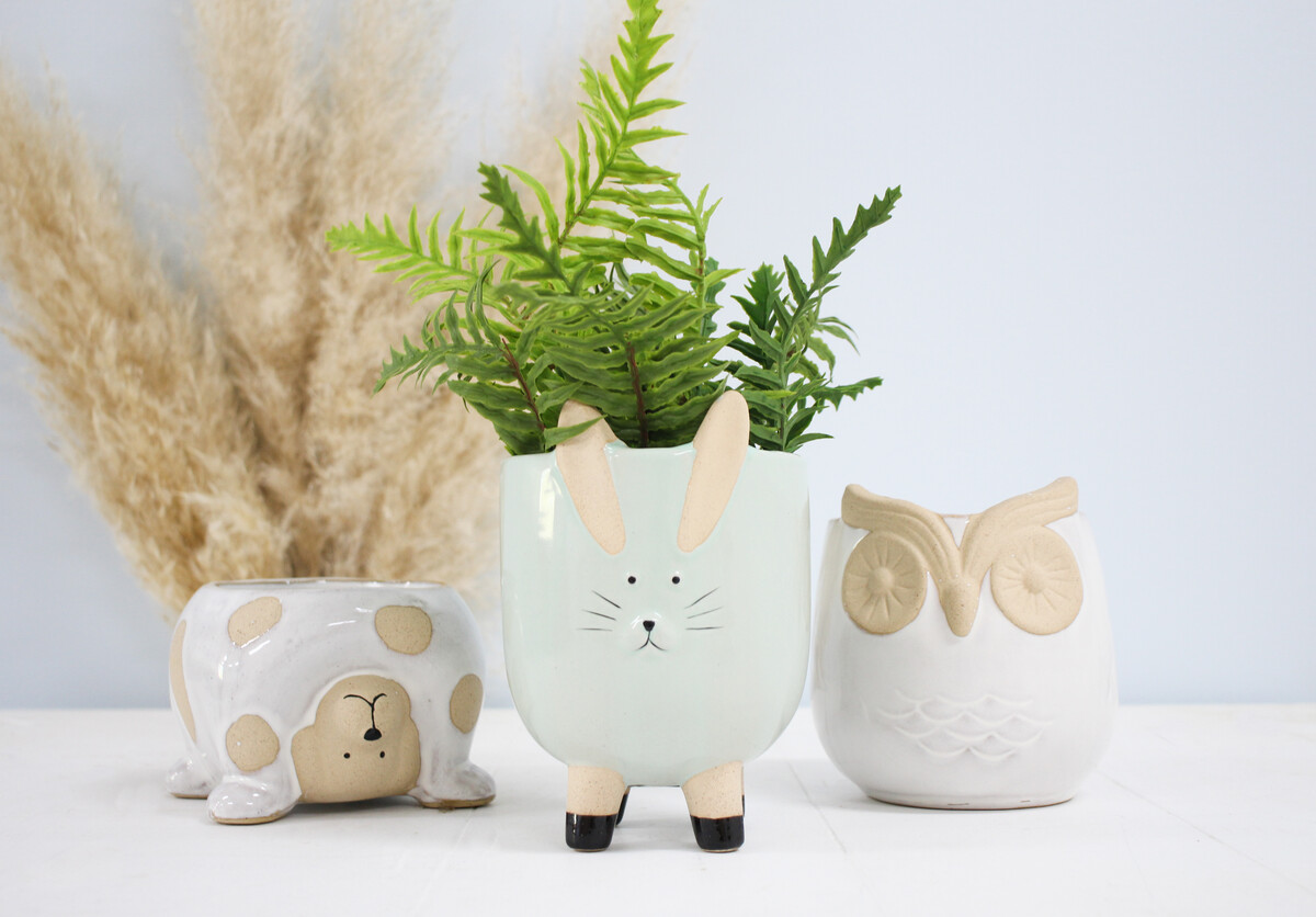 An upside-down bear as sweet as an upside down pudding, the trickster bear is a planter that will ensure that the interest in your glorious greens never wanes-after all, here is to a double dose of attractiveness. The ceramic made planter is in the same range as other planters inspired by creatures. The high glaze on the body, the usage of subtle colours to make the bear looks its most natural. The upside-down posture with the planter balancing on trickster's arms makes it quite an adorable feature for your spaces. Be it your own desk, the window sill that needs a little dash of excitement or that new succulent wanting a permanent address-Trickster bear will give it just that gorgeous little home.