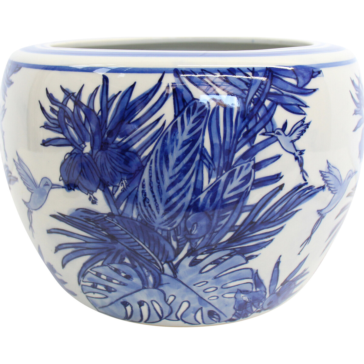 Artfully moulded with multi-functional capabilities, this Planter Tropic Large would become a favourite of several of your planters due to its inviting aesthetic beauty and versatile functionality. Its aesthetic beauty is brought about by its colourful hand-painting which depicts the image of several plants. Cute little birds can also be seen flying around the plants as they try to enjoy the succulent taste of nectar. It is made in a large sized dimension which measures 25 centimetres in width, 25 centimetres in length and stands at 17 centimetres in height.