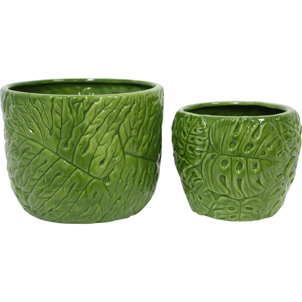 Though sold as a set which consists of two cylindrical shaped planters, the Planter Tropical Leaf S/2 offers your customers full value for their money as it does not sacrifice quality for quantity. The set consists of a small sized version which measures 11.5 centimetres in length, 11.5 centimetres in width and 9.5 centimetres in height, the large sized version of this planter however is made in a dimension which measures 14.5 centimetres in length, 14.5 centimetres in width and 11.5 centimetres in height. Both are made in a leaf shaped motif.