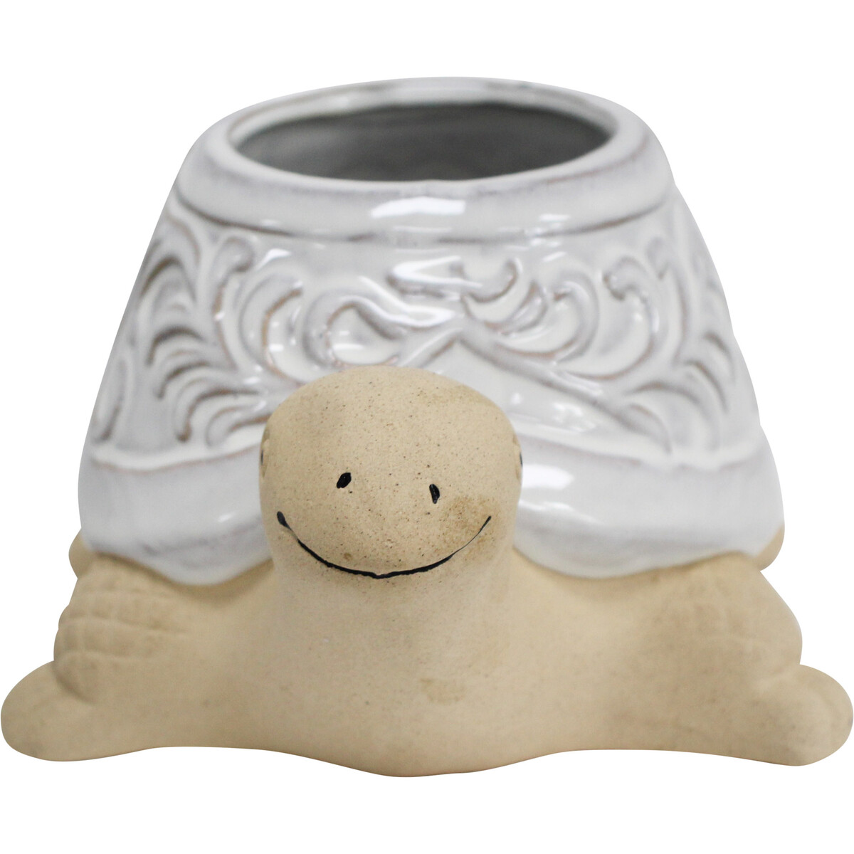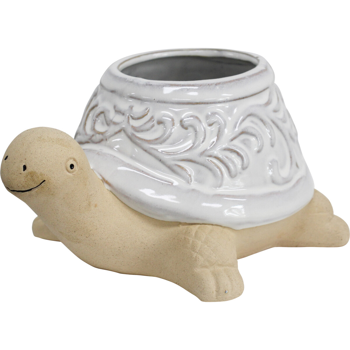 Did you know that no matter how far turtles swim and no matter how long they stay away, turtles would often navigate their way back to where they were hatched in order to lay their own eggs too when they are matured enough to do so. It is still a mystery to science how these ancient creatures are able to find their way back but it is an amazing feature. It is this same amazing creature that influenced this design of this planter as it is moulded using top quality ceramic material with the shell top being a glossy white and the rest of the turtle being a sandy brown.