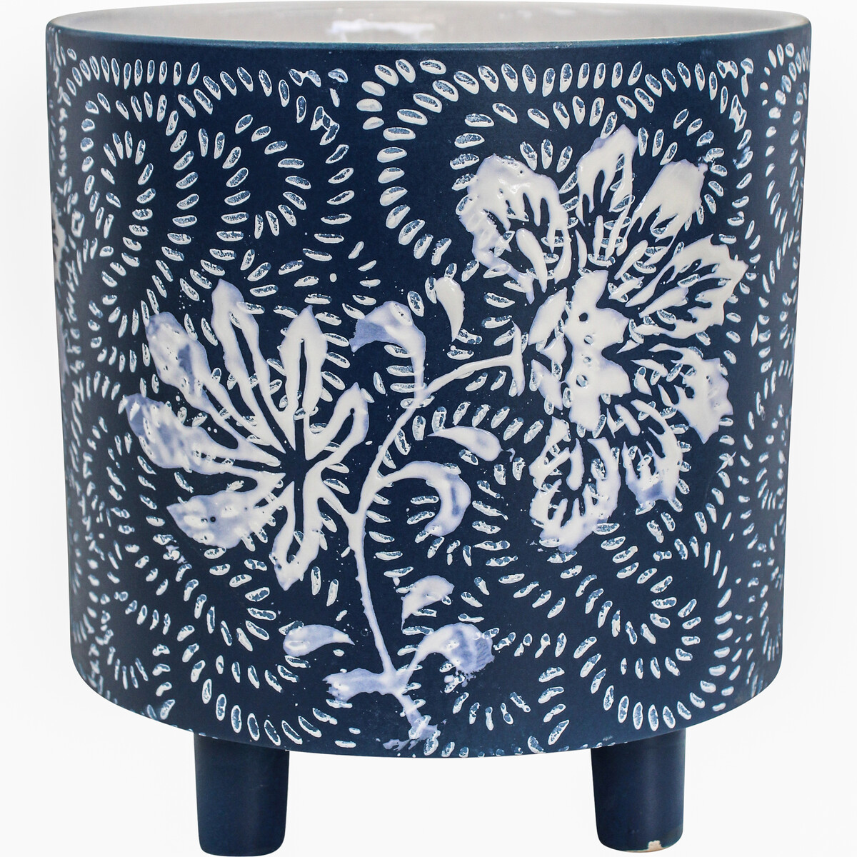 Tastefully crafted before being elaborately decorated with a floral motif, the Planter Vintage Blue Lrg has an enduring aesthetic appeal that would attract quite a lot of your customers. The exterior is luxuriously painted in a deep shade of blue which is intermittently punctuated by white coloured markings and patterns. Depicted in white is a single flower stem with multiple braches which have flowers in bloom. The interior on the other hand is a pristine white colour and provides a sharp contrast to the exterior blue glazed colour.