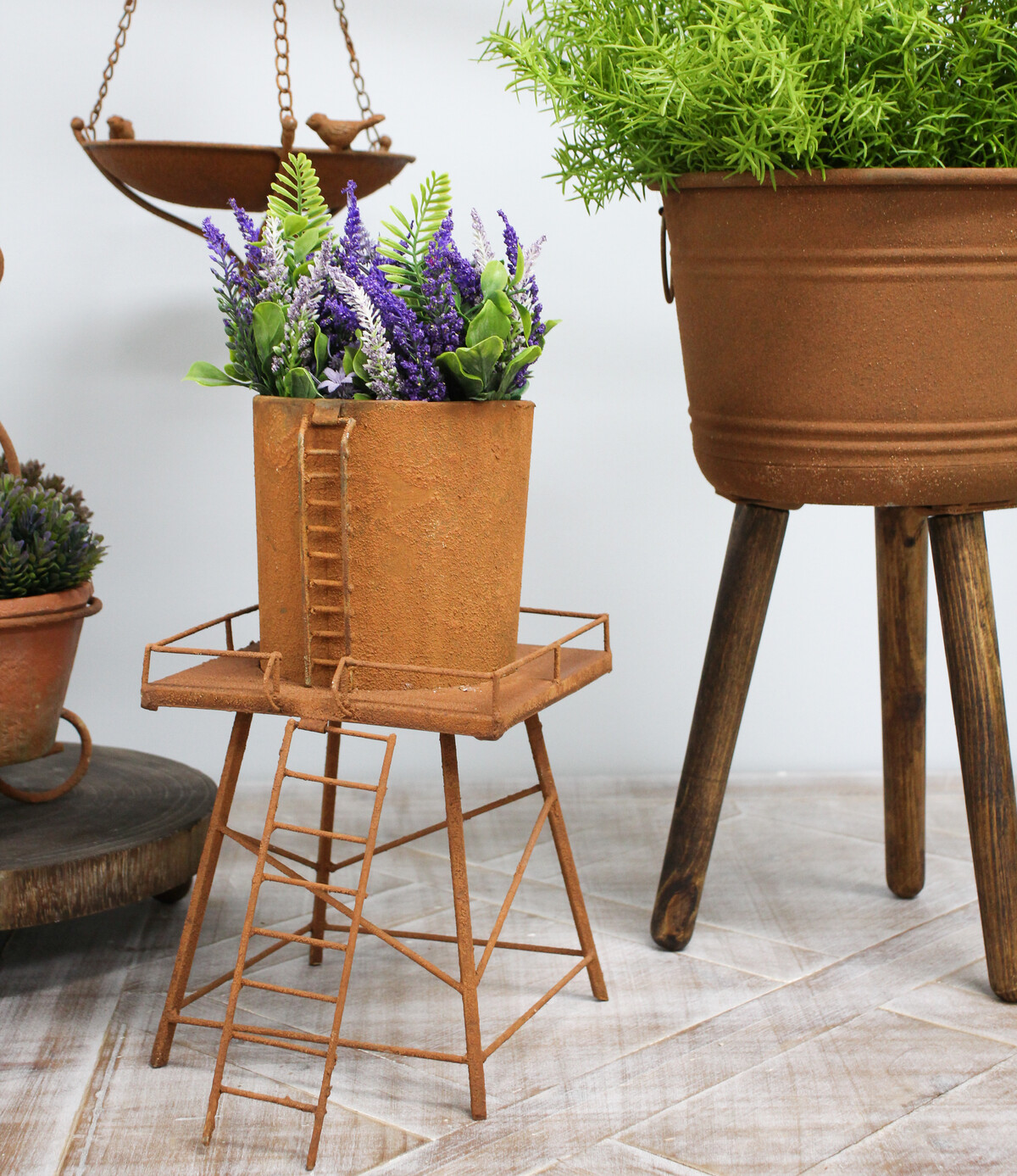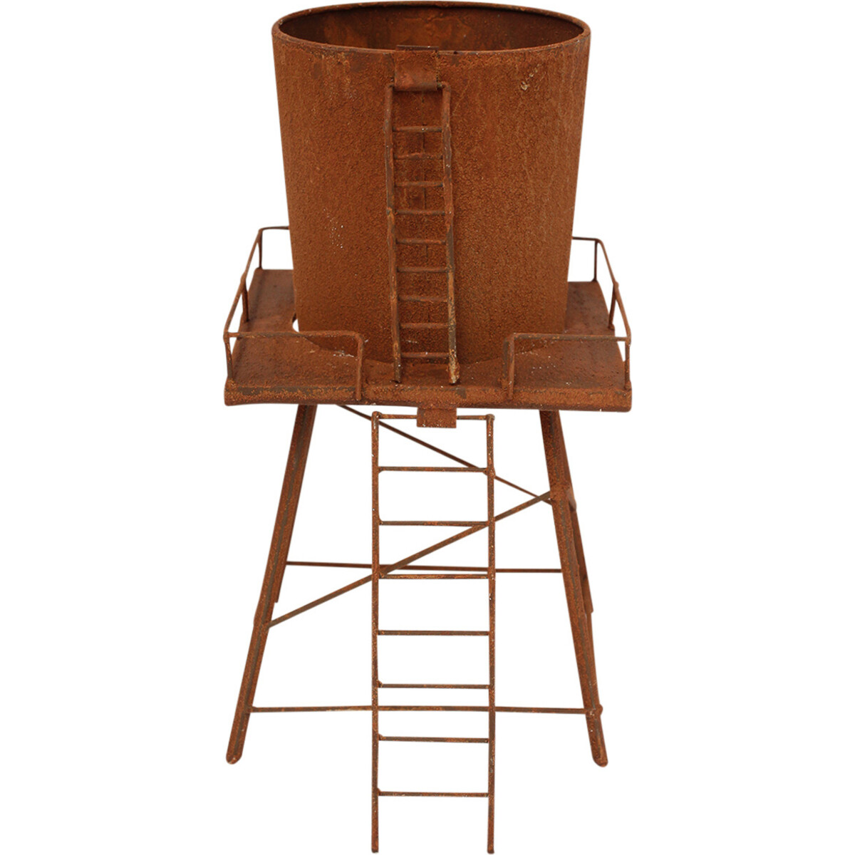 Made in a vertically inclined dimension which measures 19 centimetres in length, 19 centimetres in width and standing at an impressive height which measures 38 centimetres, this Planter Water Tank Tower is more than decorative, it is an ornament in its own right! Made in perfect similitude of a water tanker that stands on an upraised platform, it features a cylindrical shaped water tanker which doubles as a planter in this case. Running down the sides of this planter are steps which leads straight down. The planter equally sits on an upraised metallic platform.