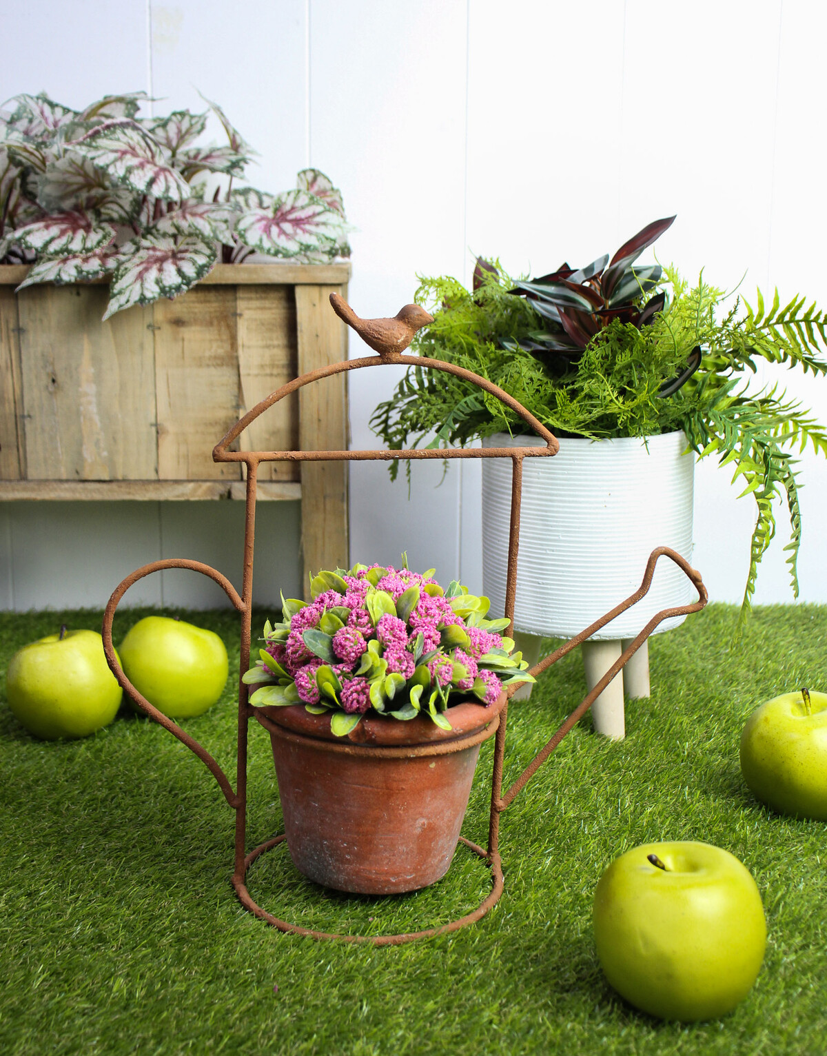 The beauty of this piece lies in its hand-finished rust patina, which guarantees that each Planter Watering Can is a one-of-a-kind treasure, brimming with individual character and subtle imperfections. This unique touch ensures that it stands out as a statement piece while complementing a diverse range of decor styles, from the traditional to the contemporary.