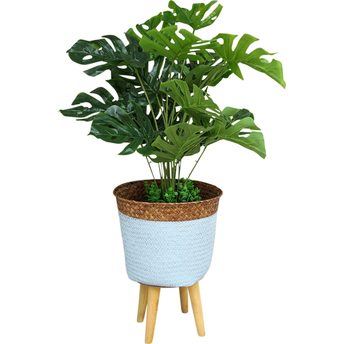 The structure of the planter is sturdy as it has been crafted from wood and straw - the lower four - legged body will hold aloft the full height of 48 cm while the basket itself is about 28 cm in width - enough to place a large plant in it. The legs of the lower body has been spaced apart so as to give this table a great balance even with a tall plant held in the basket. The straw too has been treated so as to with stand the vagaries of moisture and rough handling. The wooden structure at the base and the material used on top coordinate perfectly and will enhance the beauty of the plant placed in it - you could in fact create quite a wonderful layered kind of display with such planters - placing short and taller plants in formation. A great means to ensure that your plants and décor benefit from the natural presence of plants and yet your floor areas remain free from soil and water and perfectly clean.