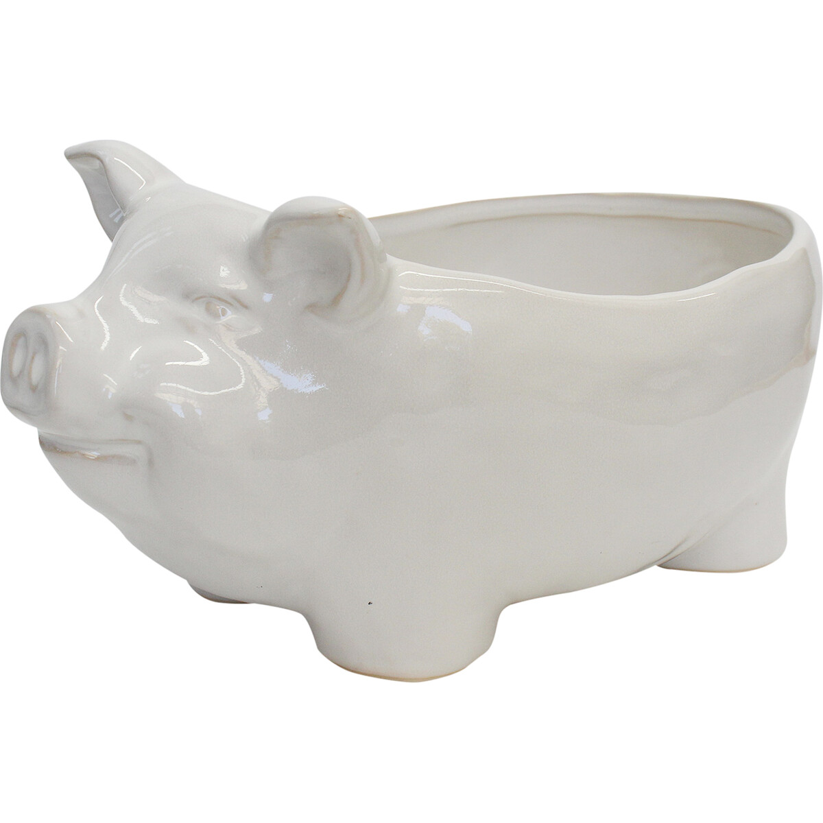 You probably already know that pigs are so closely related to humans that they share a huge percentage of our DNA. But did you know that pigs would eat almost anything they can lay their teeth on including human bones? But not to worry, this is simply a pretty figurine of the animal which is highly functional in growing a large variety of plants. It features a ceramic mould moulded in the form of a pig showcasing all the facial details of a pig and four stout legs. The choice of pristine white palette creates the perfect backdrop for every plant and d?©cor!