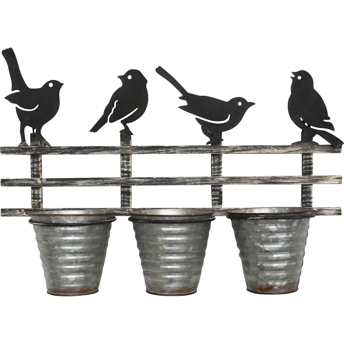 We often seek for ways on how to bring the beauty of gardens and nature at large right into our interior spaces. Having the beauty and decorative freshness of gardens decorate one’s living room, office, bedroom, dining room, conference room, kitchen, and other such interior spaces is simply incredible! This is why this Birds Three Pots was functionally designed to perform all of these decorative functions. This metal garden ornament showcases the joining of three pots with four birds perched on top of the metal frame which joins the pots together.