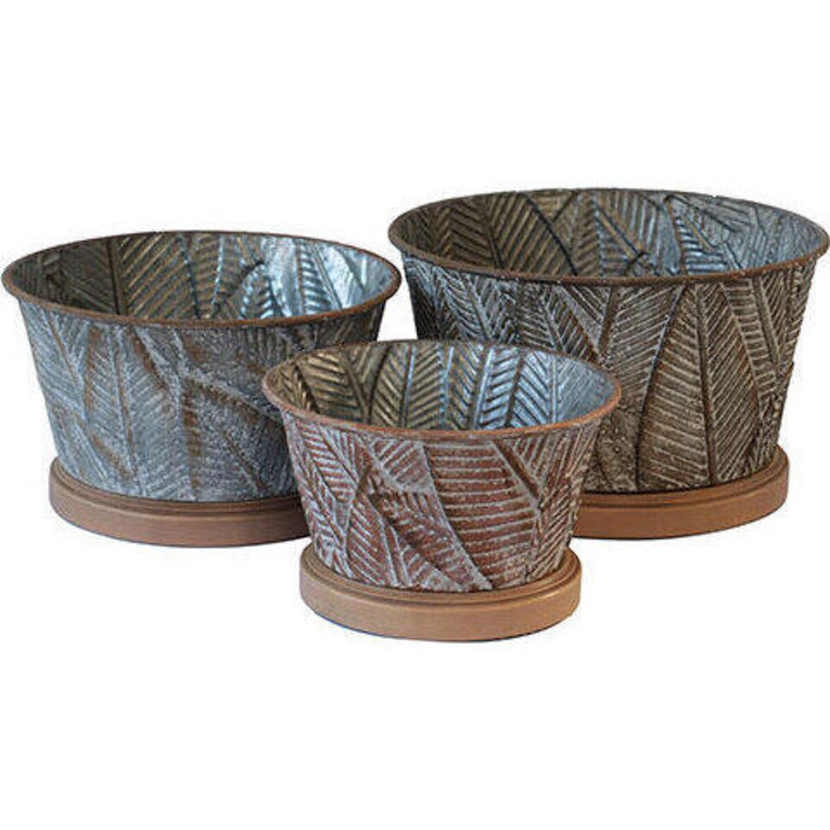 Making your potted plants find the right kind of display space is as important as nurturing them - after all when you bring them for display you would want to showcase their beauty in the best possible way and reduce the effort of leaking muddy water or grey pot exteriors that may not suit the look you are trying to acquire for some space. Here is a fabulous designed metal tub set in three varied design to allow you the option of layering them with smaller and larger plants and thus giving them varied heights too. The body is in the shape of a metal bucket embossed by a gorgeous leaf design - and the bucket like body sits atop a wooden base that makes the appearance all the more pleasing. Add palms, other tropical foliar or flowering plants and allow the beautiful bucket in grey metal colour to add a touch of gorgeousness in its own way. The height of the smaller tub is 14 cm, that of the medium at 16 cm and the largest one at 18 cm. The gorgeous grey and white washed rusticity lends the bins stunning looks. Can make interiors styling with plants such a great option with help from these tubs.