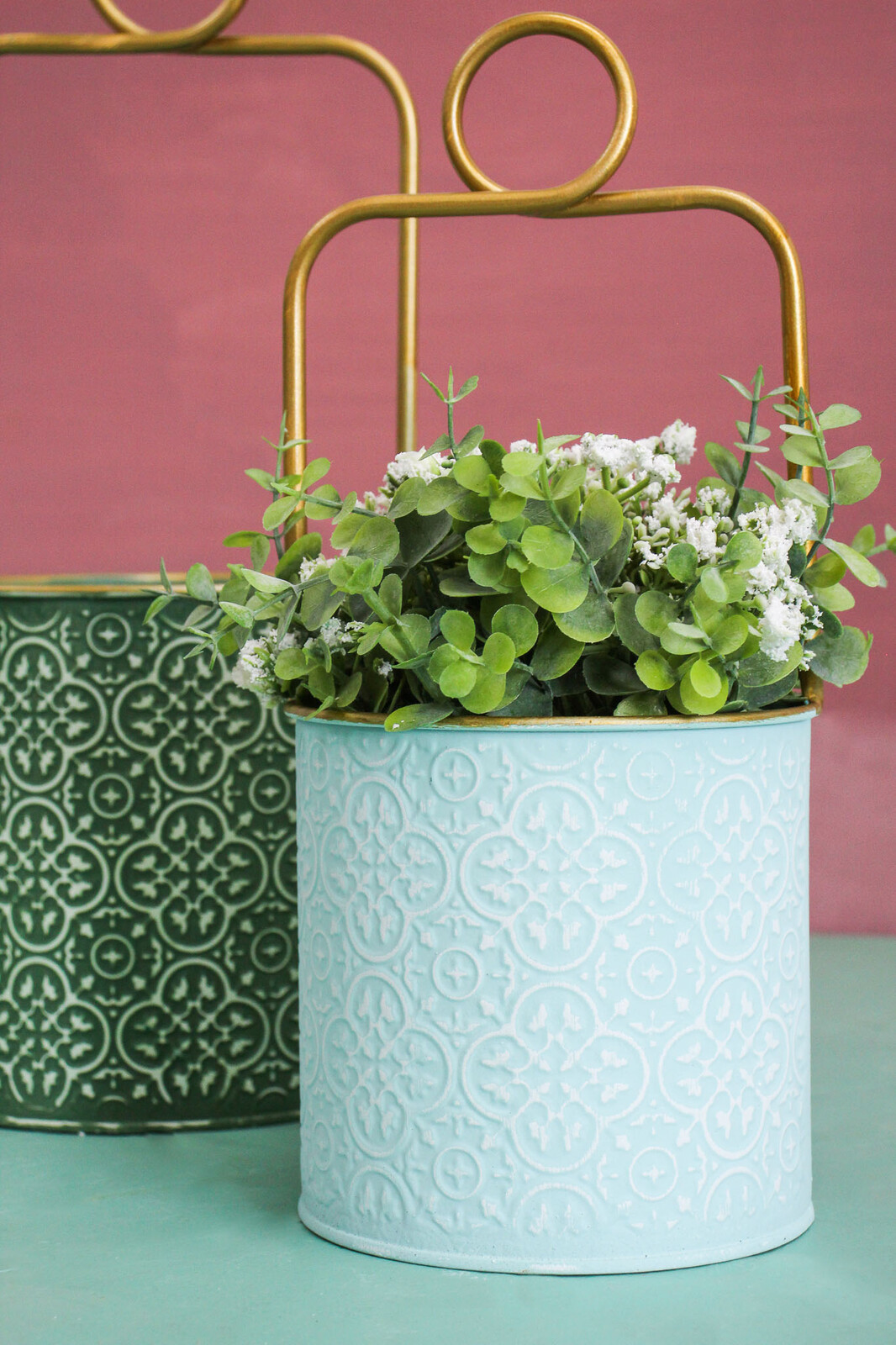 These are a real treat for the eyes and the hands - they’re sturdy, but they also look so lovely. We’ve gone for a distressed metal finish to give it a little bit of that old-school charm, and the patterns on them are just a delight to look at. We think this set will look great as herb planters, but they're really versatile - your customers can use them for anything.