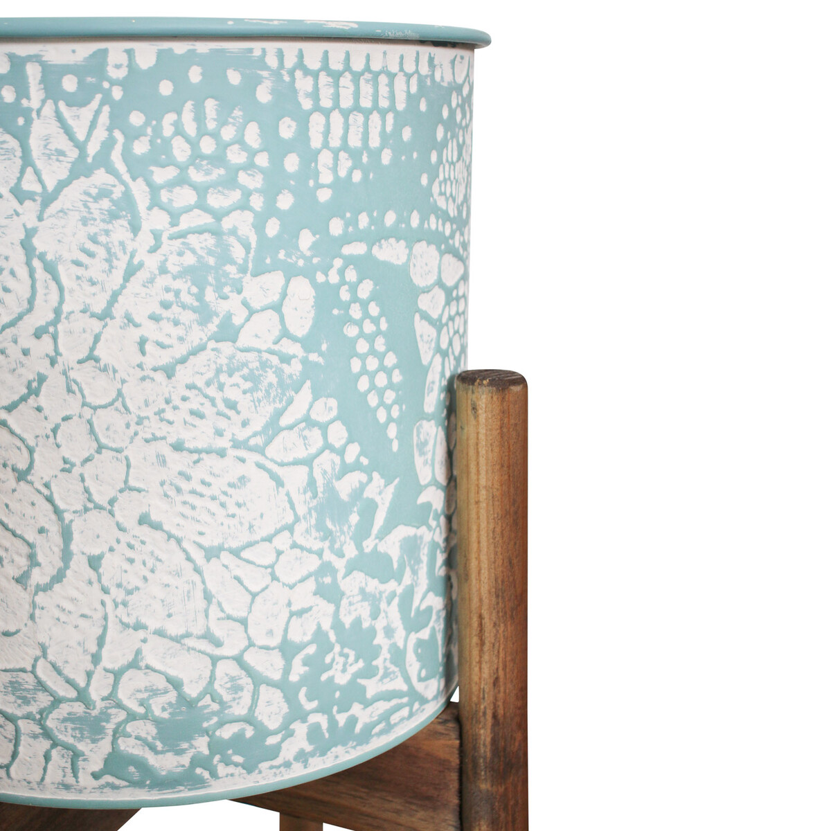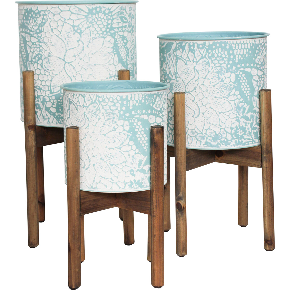 Through the use and combination of two materials – premium quality metal and hundred per cent natural wooden material, this Large Metal Tub Planters S/3 Peony Blue unsurprisingly possesses a unique aesthetic appeal which makes this set of three planters to stand out from the rest. The plant displaying tubs are made in cylindrical shape using metal while it is borne up comfortably using wooden material. The set consists of three different sizes; small, medium and large. The largest of these planters measure 31 centimetres in height, the medium sized version measures 27 centimetres while the smallest measure 22 centimetres.