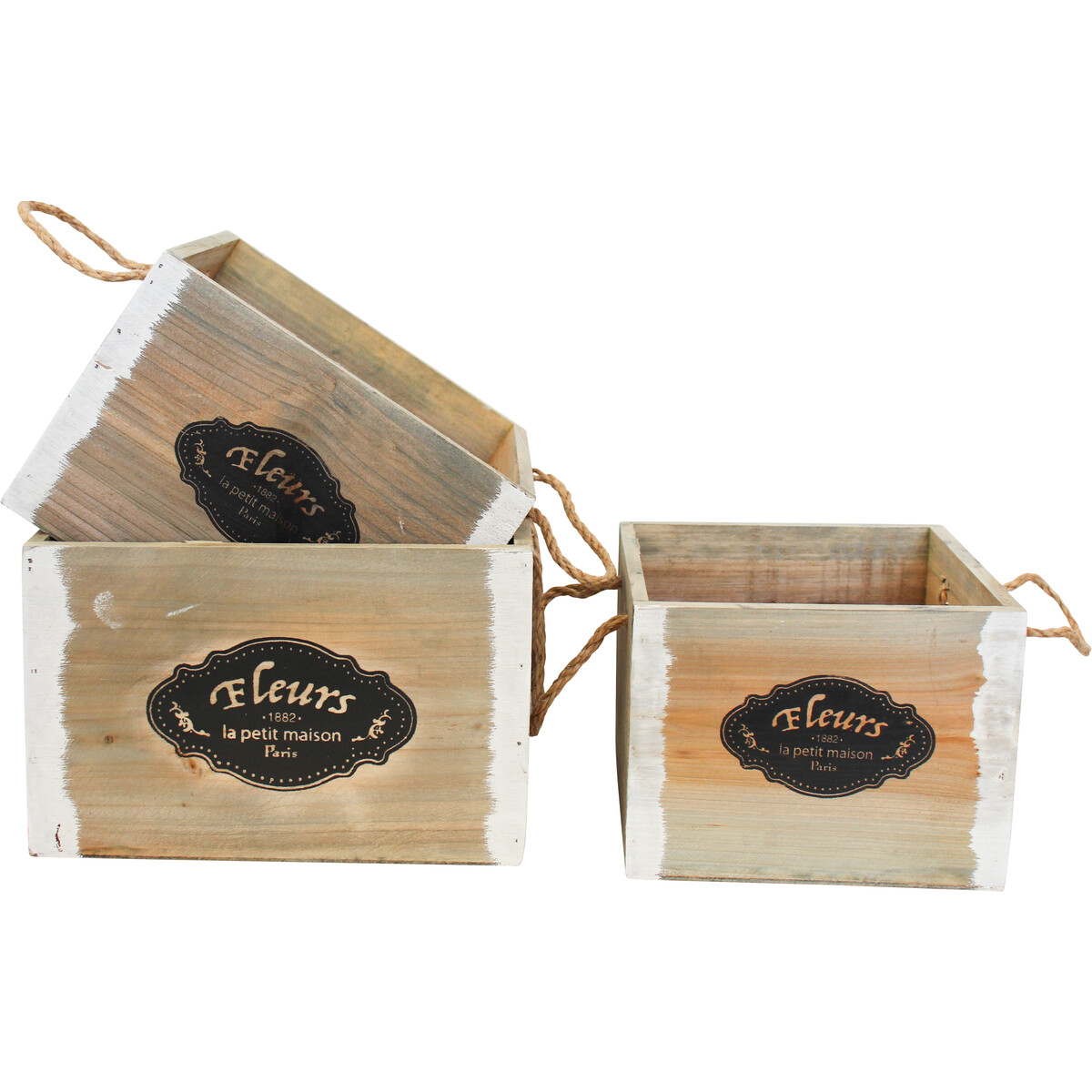 Created to impress as much with its vintage styling as with its sturdy built, the three boxes in the set are differently sized. Square and deep enough for you to place larger stemmed plants as well, it would however look best suited to short stemmed flowering ones of herbs. You could also use them to give a home to your potted veggies, be it cherry tomatoes, those exotic chilies or the likes. helps you create an impressive green corner wt hot going too ornate. Leans into your love for things shabby chic as well. The wash of white colour along the edges and the industrial print makes it rather cottage and farm like in appearance and helps build in the same vibe in your patio, the balcony or any pace where you use them.