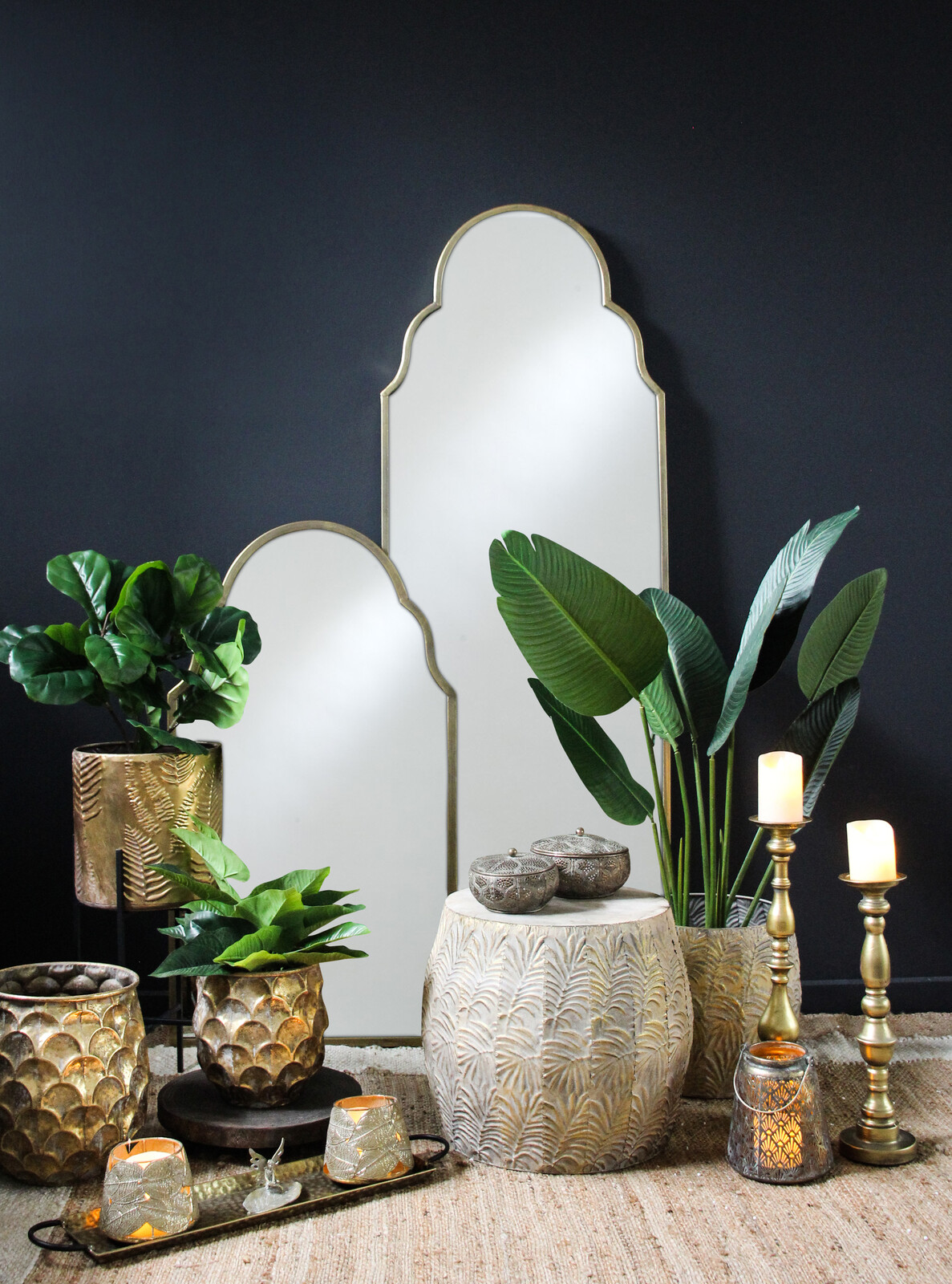 Featuring engraved leaf motif, golden tone, and a rustic accent. A tropical theme inspires the barrel-shaped metal. It is the best alternative to give a traditional accent to one's home. This attractive leaf textured design is perfect for enthralling guests and showing off one's metal collections. Made wholly from metal, this stool is durable with non-corrosive properties, and it would stand the test of time. These peculiarities make Planter/Stool Textured Leaf is a perfect buy. This textured stool is reliable and durable for everyday usage. This versatile metal is a garden stool to offer comfortable seating or to augment a planter. It is also handy as outdoor seating. Our metal collection does not require extensive care. It can be maintained using household cleaning agents.