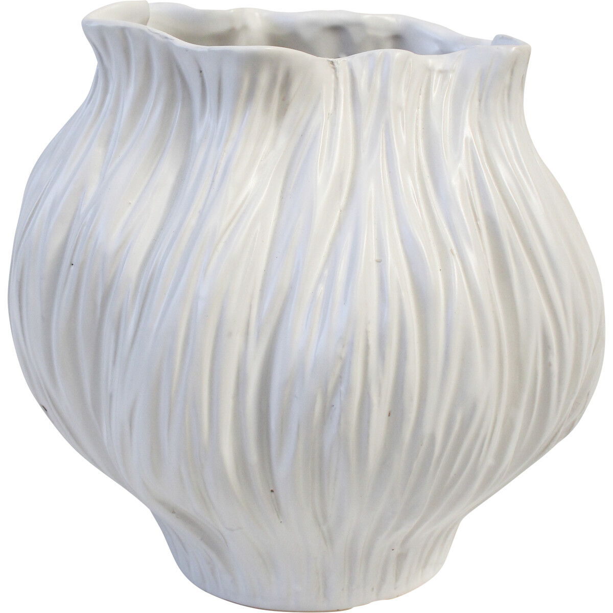 Ornately crafted in the shape and design of plant bud, the Planter/Vase Bud Med has a compelling visual attraction which your customers would certainly notice irrespective of where you choose to display this medium sized planter in your shop. The base is a bit smaller than the rest of the planter as the mid-section is made in a bulbous form while the opening is narrowed a little. The shapely form makes it look like an onion. It is hand painted and glazed in glossy white palette.