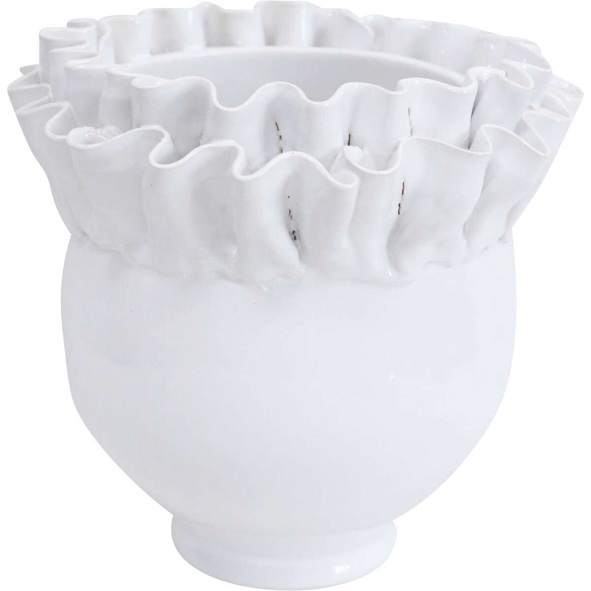 Our Parisian White Planter/Vase really knows how to make an entrance. It’s one of those pieces that works hard and looks good doing it - classic white ceramic, but with this bold, hand-glazed ruffle top that does all the talking. We’ve seen it styled as a planter, but honestly, it works as a statement vase or even just as a decorative focal point on its own. The sort of thing that holds its own on modern or traditional shelves, with indoor plants or dried blooms.