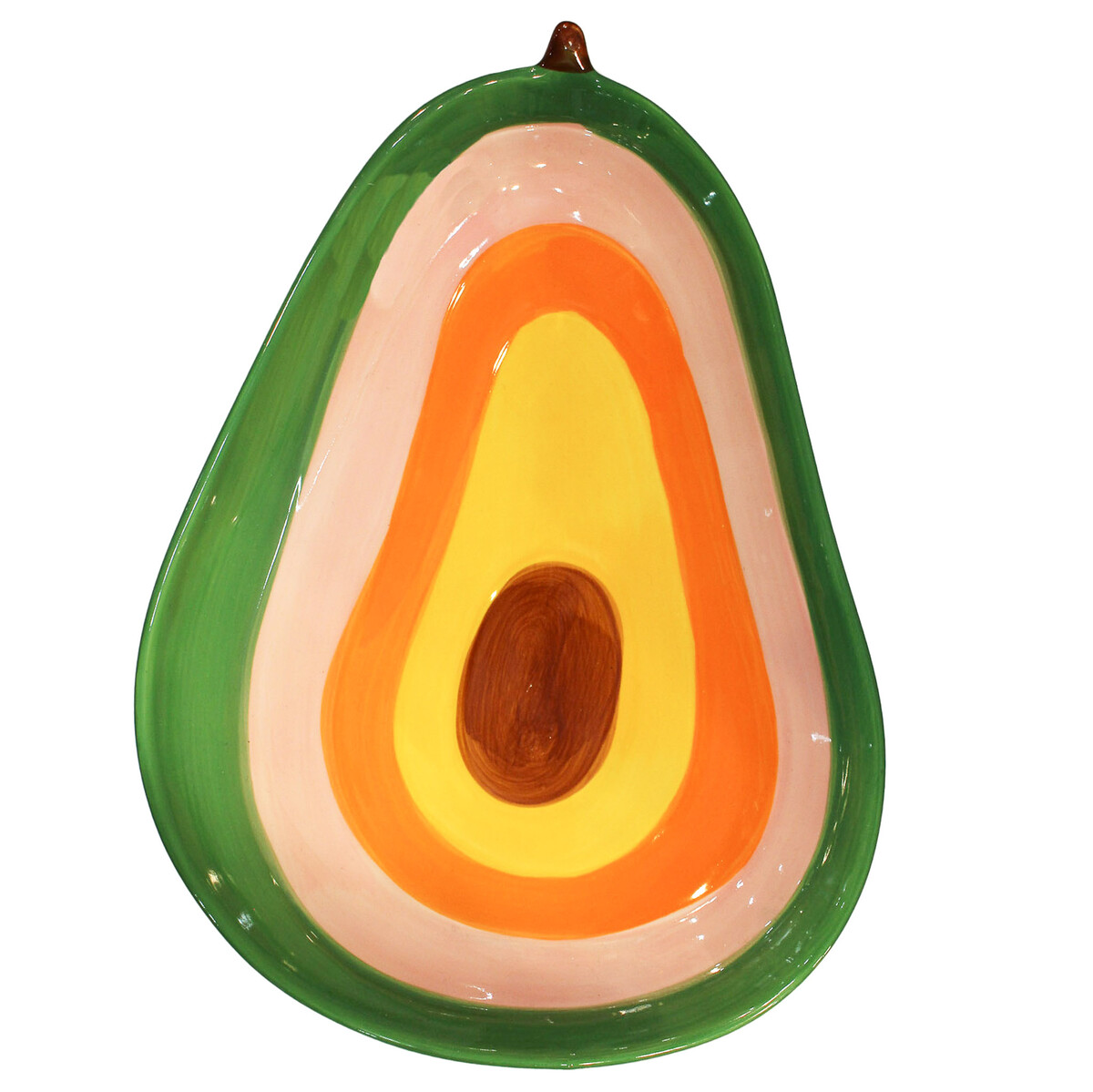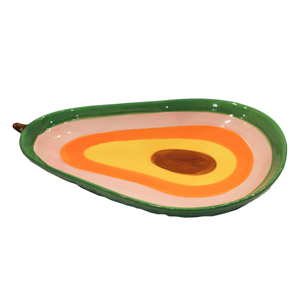 Plate Avocado Lrg captures the beauty of an avocado with its remarkable colour palette. The brown, yellow, orange, peach, and green hues blend seamlessly to replicate the natural tones of a ripe avocado, infusing one's dining table with a touch of nature's beauty.