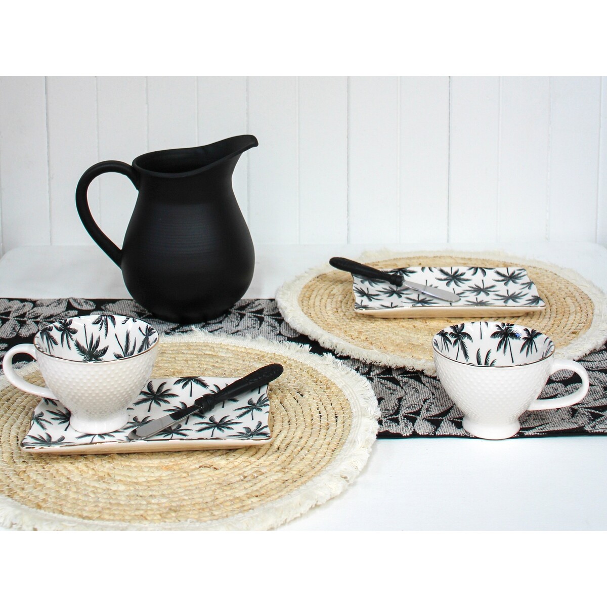 This glorious plate with a beautiful palm tree print is the perfect vintage addition to your modern Australian home. This amazing plate gives your kitchenware a touch of the beach and the ocean. This classic print indicates a charming design. Glancing at this plate on your dinner table would want you to take a trip down the coast. This gorgeous plate looks amazing and adds a beachy bohemian vibe to your kitchenware. This plate is made with the highest quality porcelain that is easy to use and provide for a comfortable experience, even for children. The high-quality porcelain material that is highly resistant to heat and is very durable and long-lasting is used to make these. This amazing plate paired with its counterparts makes for the best gift for your family and friends who are lovers of the ocean!