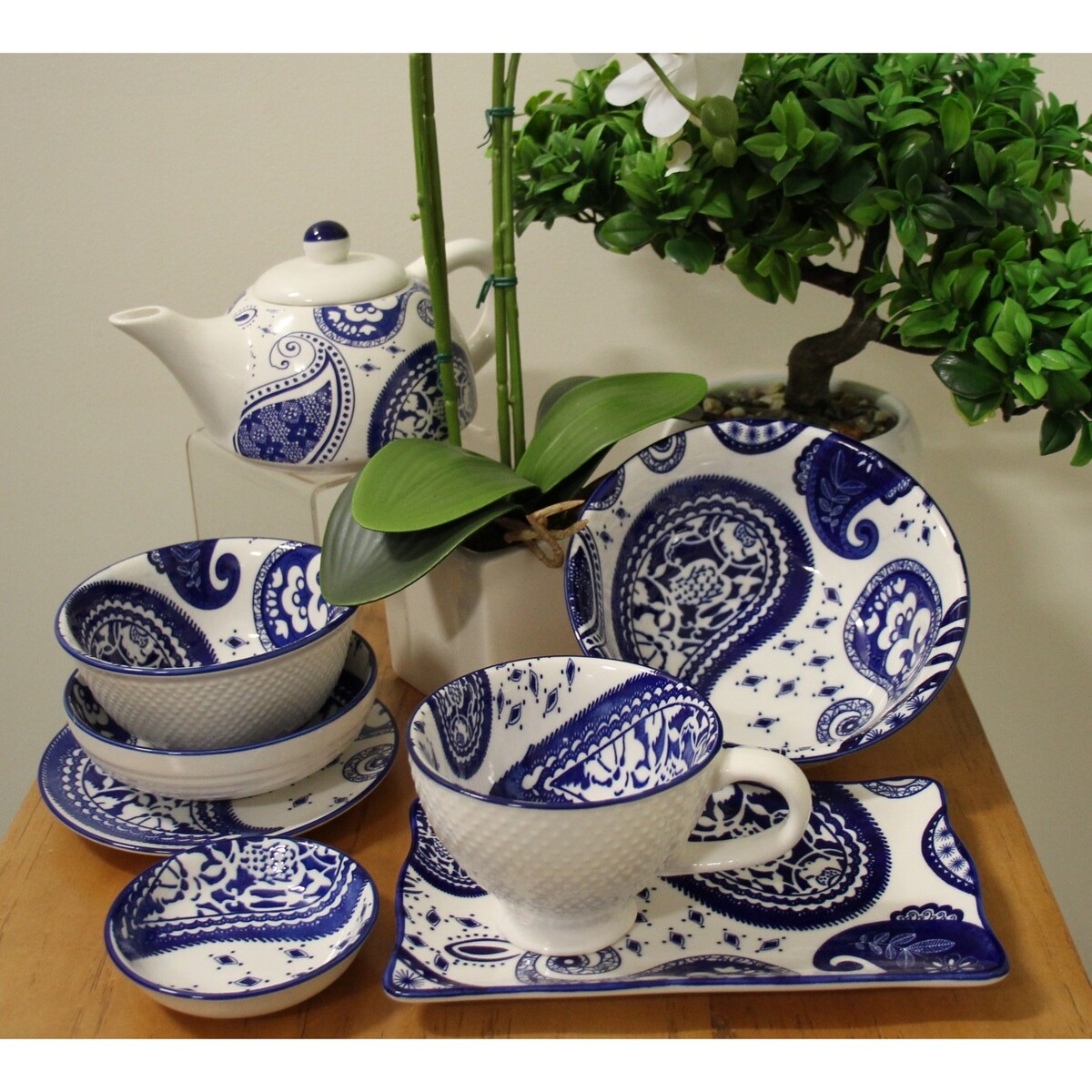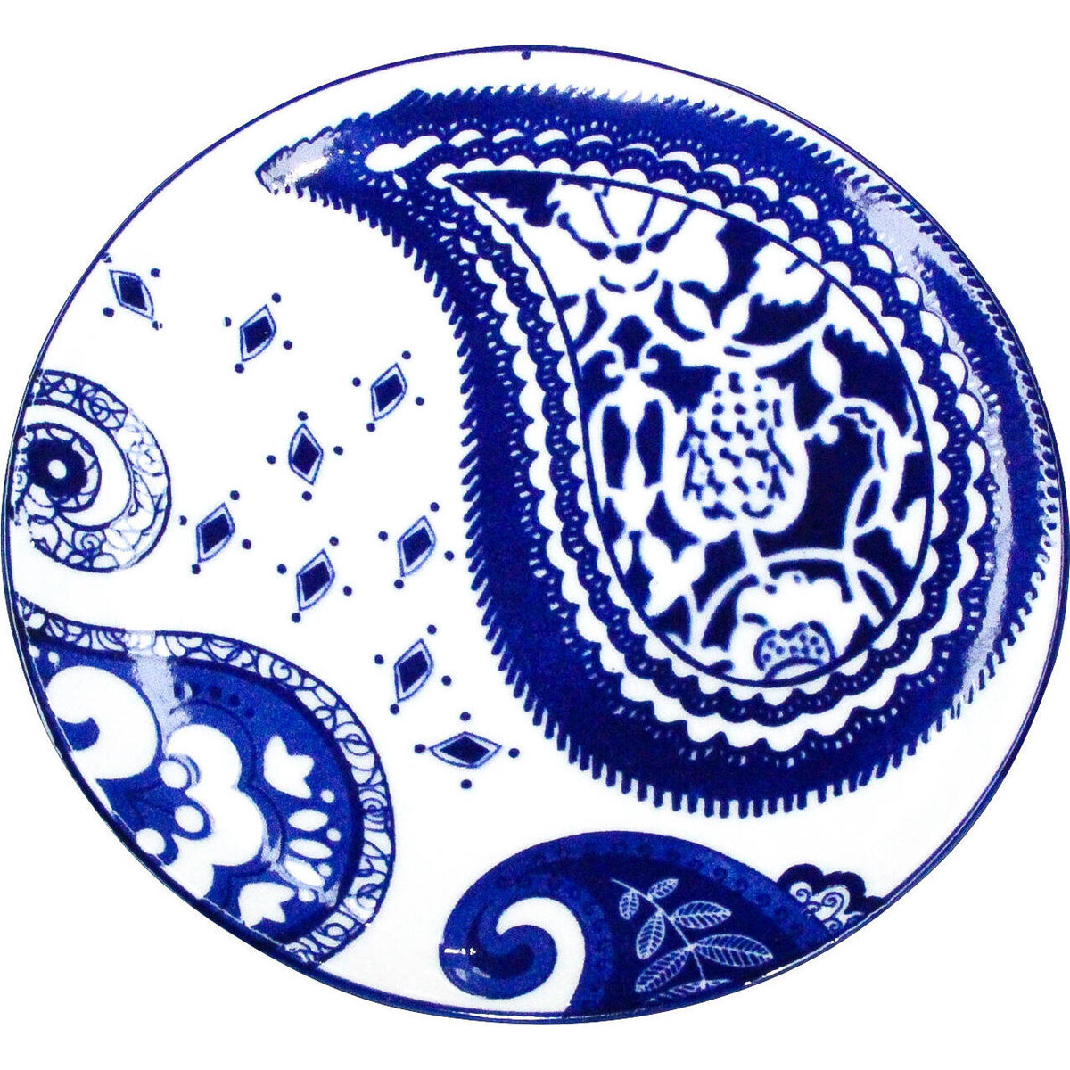 Deep blue hand painted detailed paisley designs on a bright white background makes this plate simply enchanting and an ideal home accent. The Paisley small plate has a delicate, yet distinct quality about it that will make guests simply revel in the experience that it will bring them. Please note this item is NOT microwave or dishwasher safe.