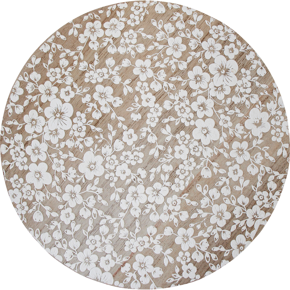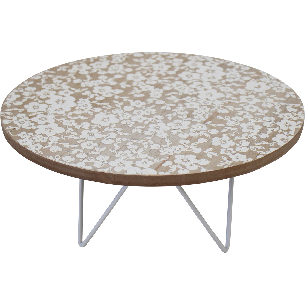 Showcasing an oval top that is made through the use of specially engineered medium density fibreboard material that measures 25 centimetres in length and 25 centimetres in width, it is borne up by durable metallic stand which gives this platform a total height of 12 centimetres. The brown oval wooden top is decorated with white painted floral patterns while the stand is equally painted in immaculate white colour. This platform is suitable for use as a centre table, office table, and even as a dining table for those who like low tables.