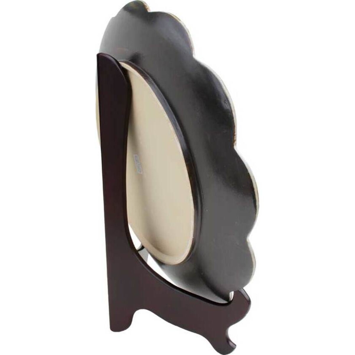 • The wide scalloped outer edge is banded by a bead pattern and scrolls that curve inward forming a foliate shape.