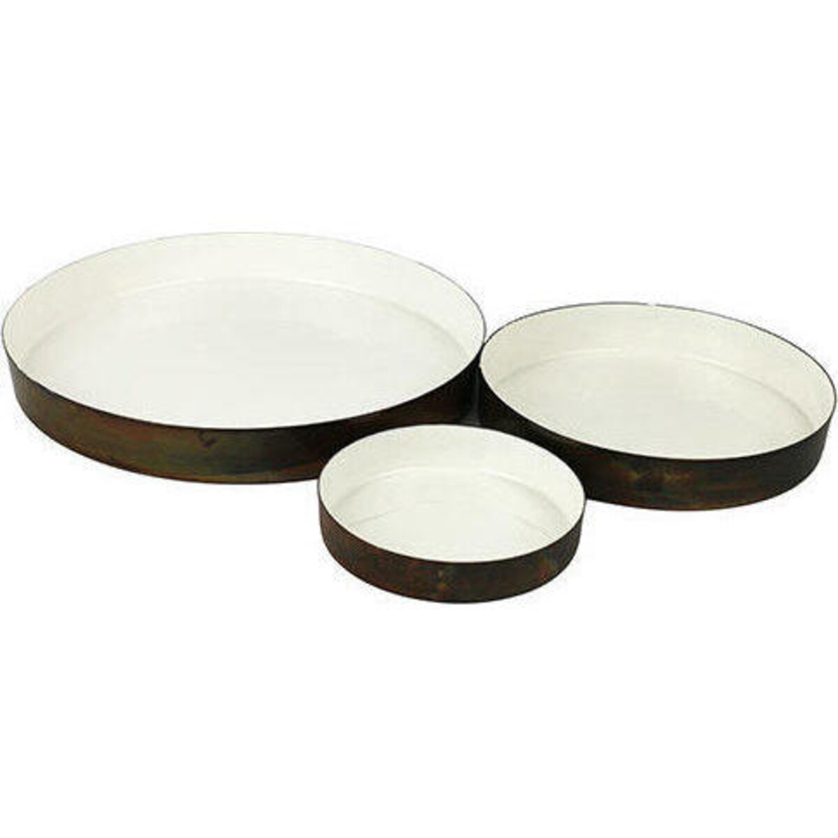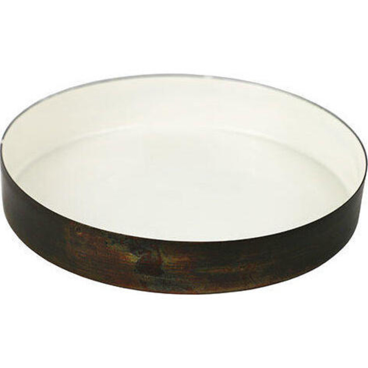 Add the charm and the luxurious feel that copper lends to your spaces with this innovatively designed piece from Lavida that could be used individually or a set with its larger and smaller version. This round platter has a durable integrity that comes from its metal outer and is ready to be used for serving edibles because of the enamel lining. A perfect blend of class and sophistication, this is a wonderful means of ensuring that your table setting acquires a lovely new look of elegant luxury with ease. This platter could be used as much for smacks as for salads and the likes. Place this on the coffee table or the dining table and help it acquire a neat and finished look along with the rest of the set in three different sizes. The raised rim of the platter keeps food from spilling and makes gripping it far easier.
