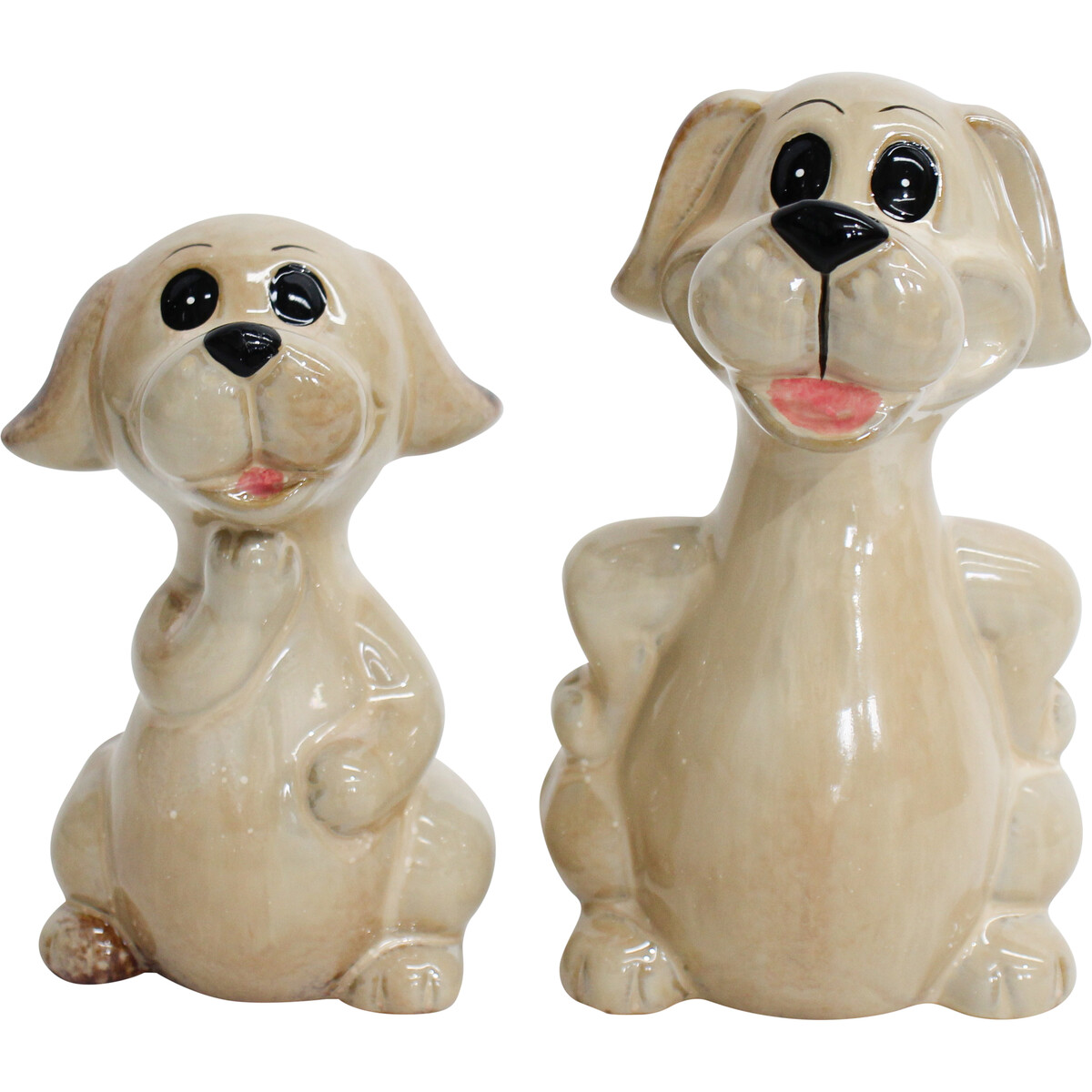 It is a known fact that apart from being given food and treats, one other paramount habit that dogs have is to run around and play. It is therefore not surprising to see two or more dogs engaged in a mock fight. If there is no other dog, they would be glad to play with humans. Puppies in particular, are the most playful and this is why this ceramic dog themed ornament showcases a small and large sized dog with a playful countenance.